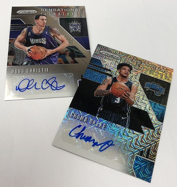 Look for autographs from rookies, veterans, and all-time NBA Greats in Signatures, Rookie Signatures, and Sensational Signatures. Each has a Prizms Gold version #'d/10 and a Black version #'d one-of-one.