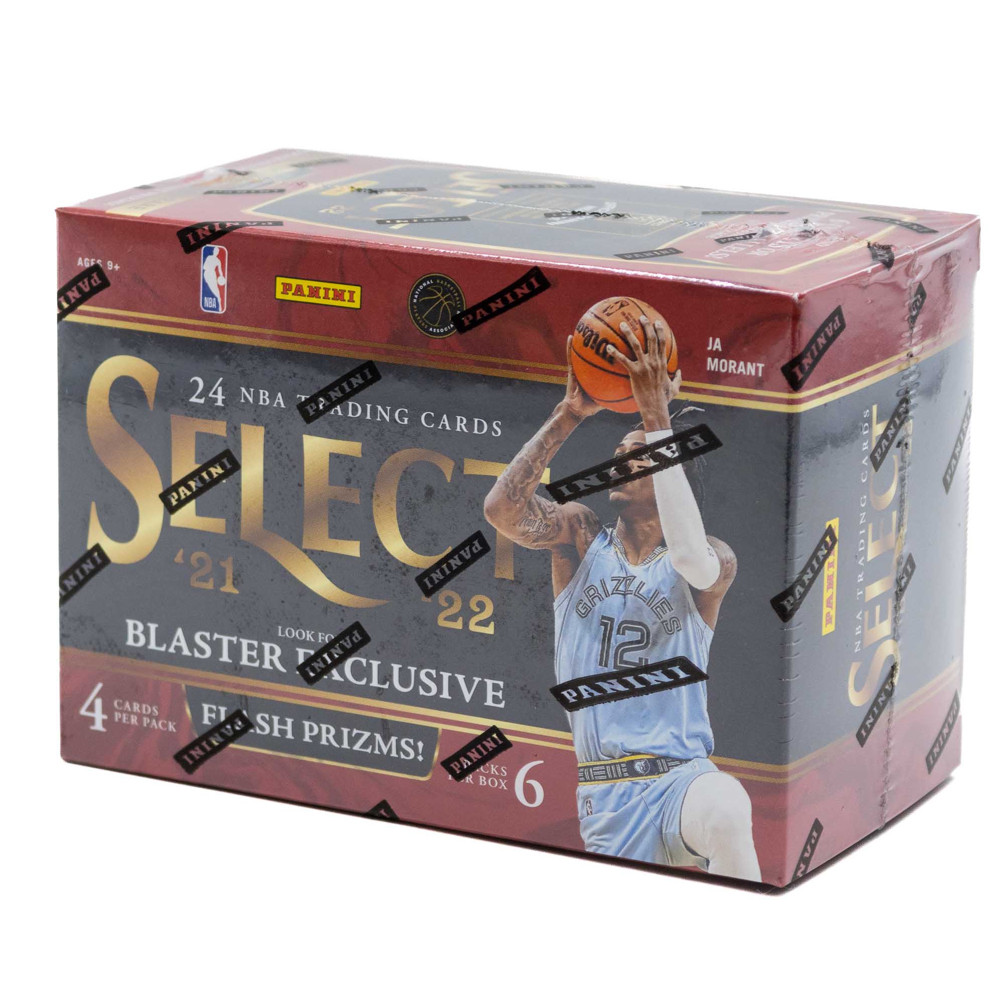 Eine originalverpackte (OVP) Sammelkarten Box von 2021/22 Panini Select Basketball NBA Blaster Box mit 6 Packungen per Box, 4 Karten per Packung.