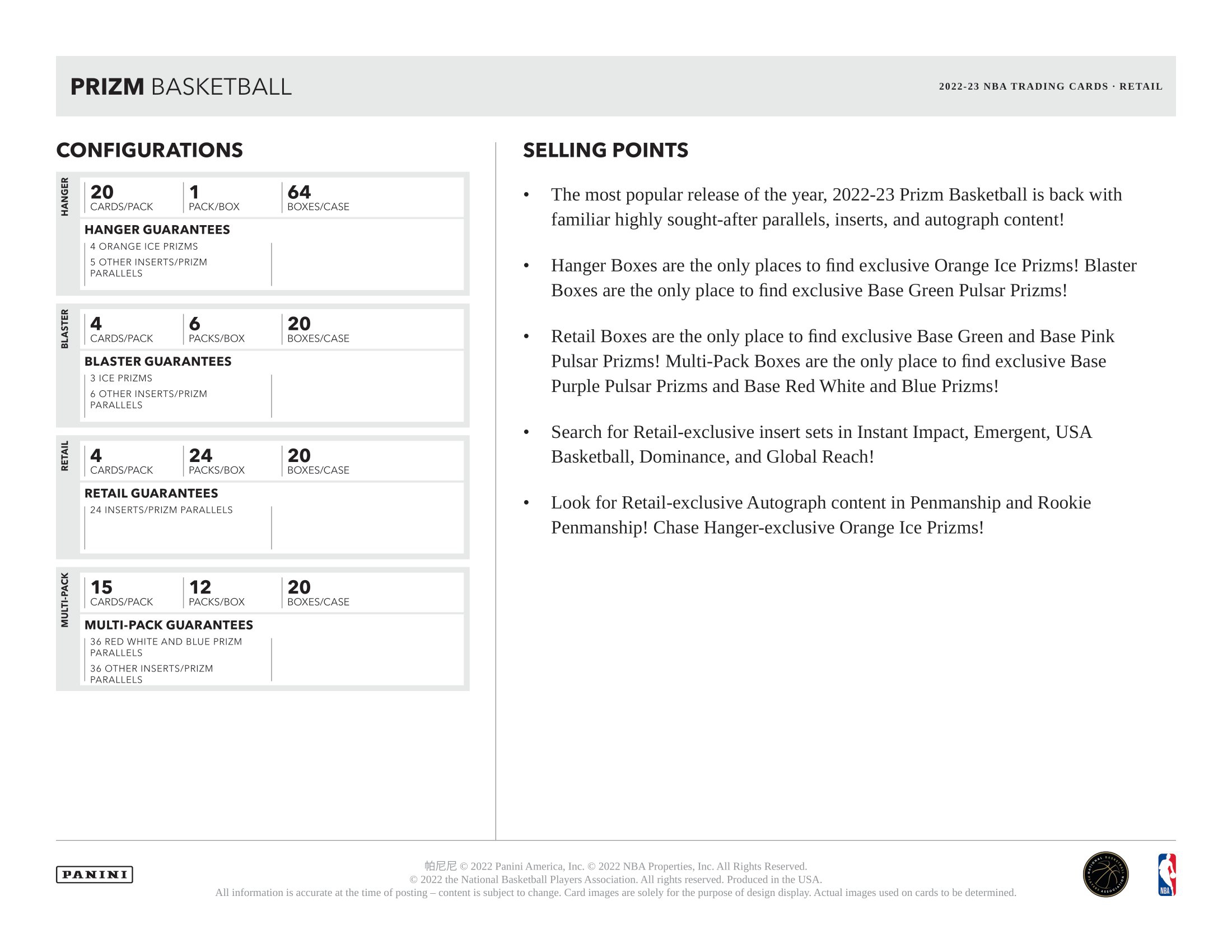 Bist du bereit für das am meisten erwartete Release des Jahres? Dann aufgepasst: 2022-23 Prizm Basketball ist zurück und bietet dir vertraute, hochbegehrte Parallels, Inserts und Autogramm-Inhalte!