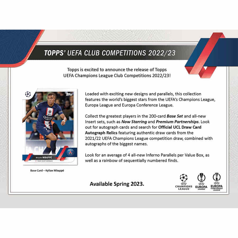 Vollgepackt mit aufregenden neuen Designs und Parallels, zeigt diese Kollektion die größten Stars der UEFA Champions League, UEFA Europa League und UEFA Europa Conference League.