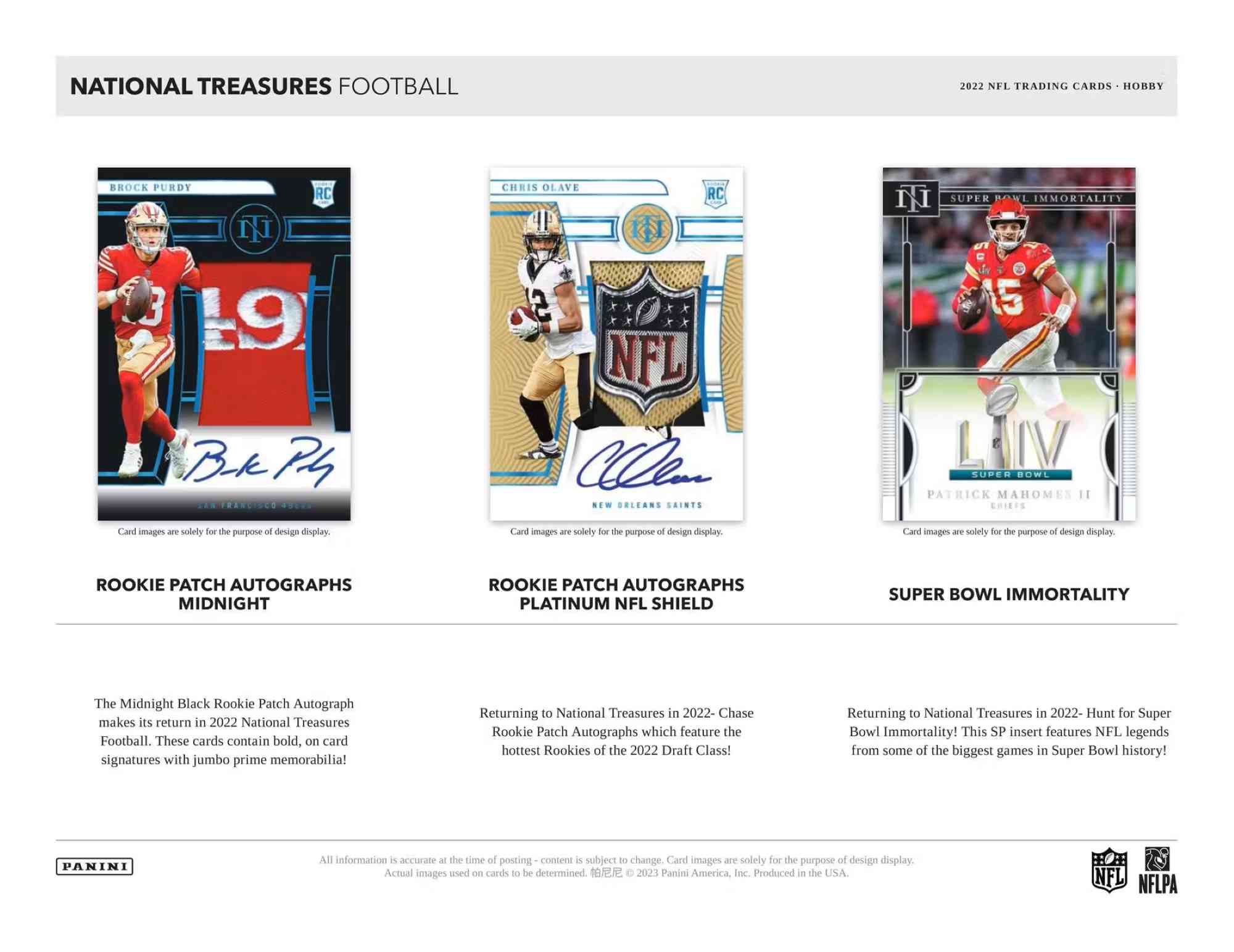 Neu in 2022 National Treasures, Halte Ausschau nach neuen Cardsets: Rookie Treasured Impressions, Lasting Legacies, Treasured Dual Cuts, Modern Masters, and Treasure Hunt!