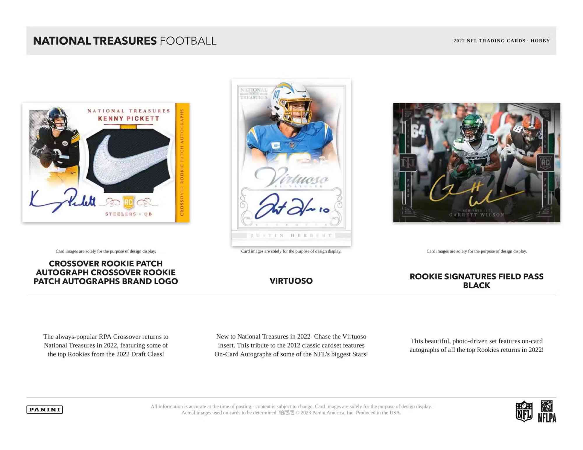 VIRTUOSO: New to National Treasures in 2022 - Chase the Virtuoso insert. This tribute to the 2012 classic cardset features On-Card Autographs of some of the NFL's biggest Stars!