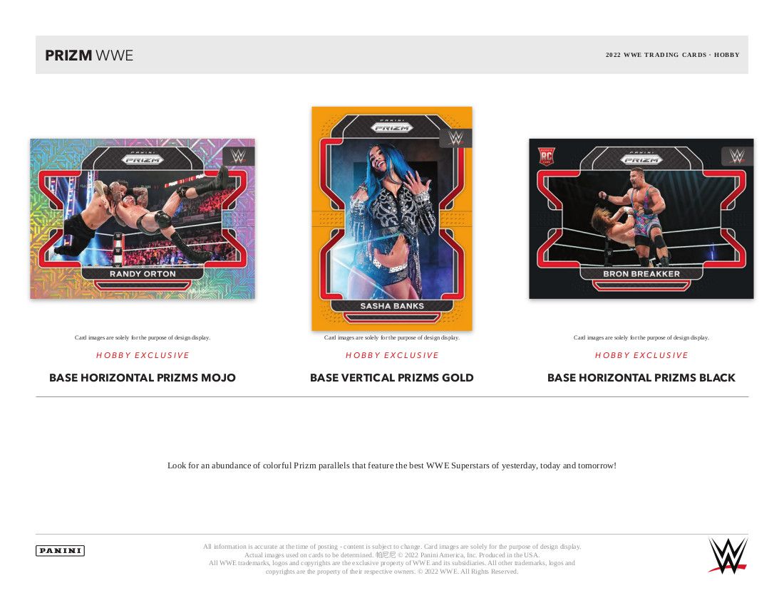 PRIZM PARALLELS: Look for an abundance of colorful Prizm parallels that feature the best WWE Superstars of yesterday, today and tomorrow!
