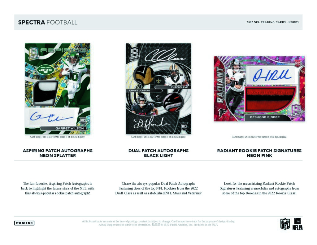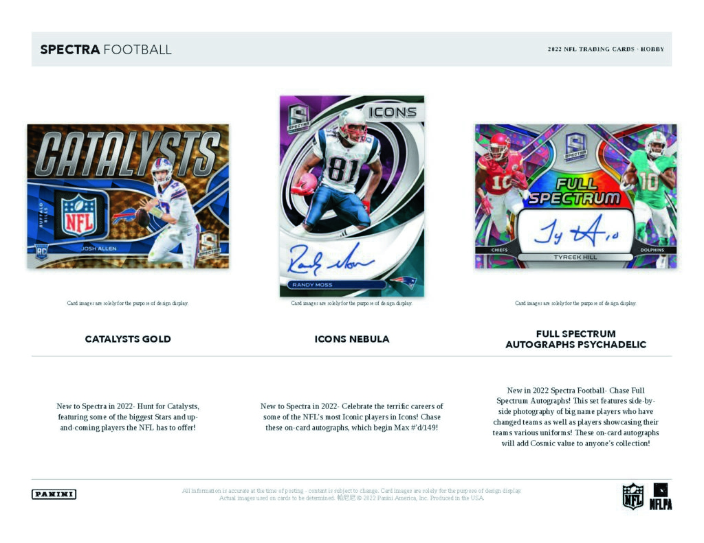 FULL SPECTRUM AUTOGRAPHS: New in 2022 Spectra Football - Chase Full Spectrum Autographs! This set features side-by-side photography of big name players who have changed teams as well as players showcasing their teams various uniforms! These on-card autographs will add Cosmic value to anyone's collection!