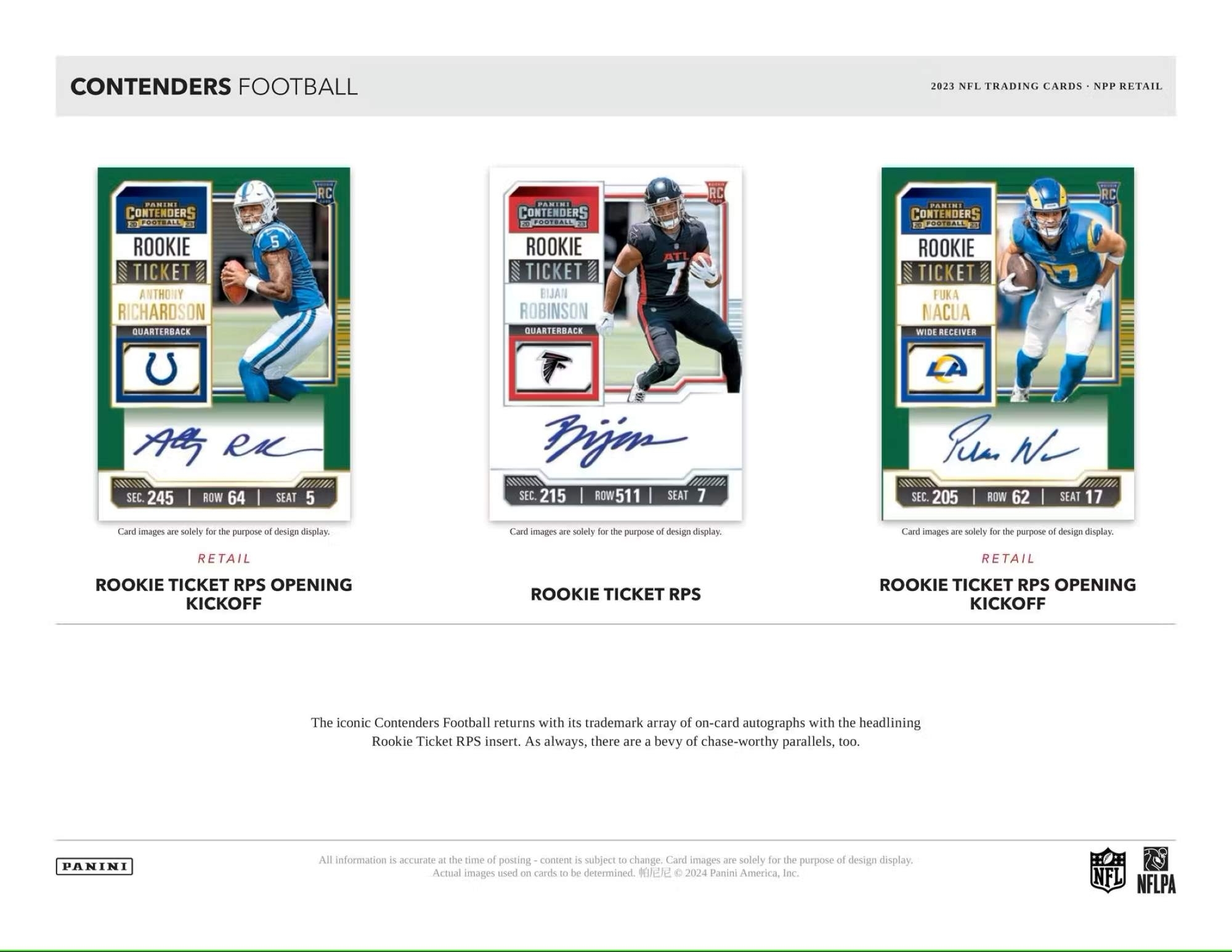 Der beliebte Klassiker Contenders Football kehrt für die Saison 2023 zurück und bietet erneut seine charakteristische Sammlung an Inhalten, die von Rookie Ticket Autographs und weiteren Hommagen an die talentierte 2023 NFL Draft Class angeführt wird.