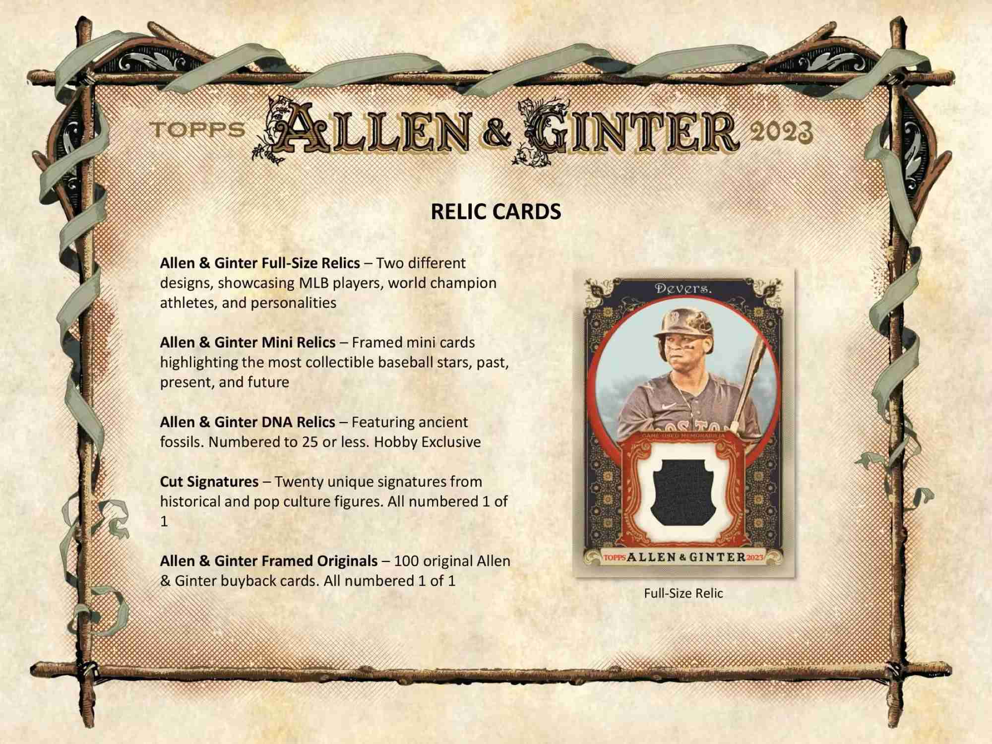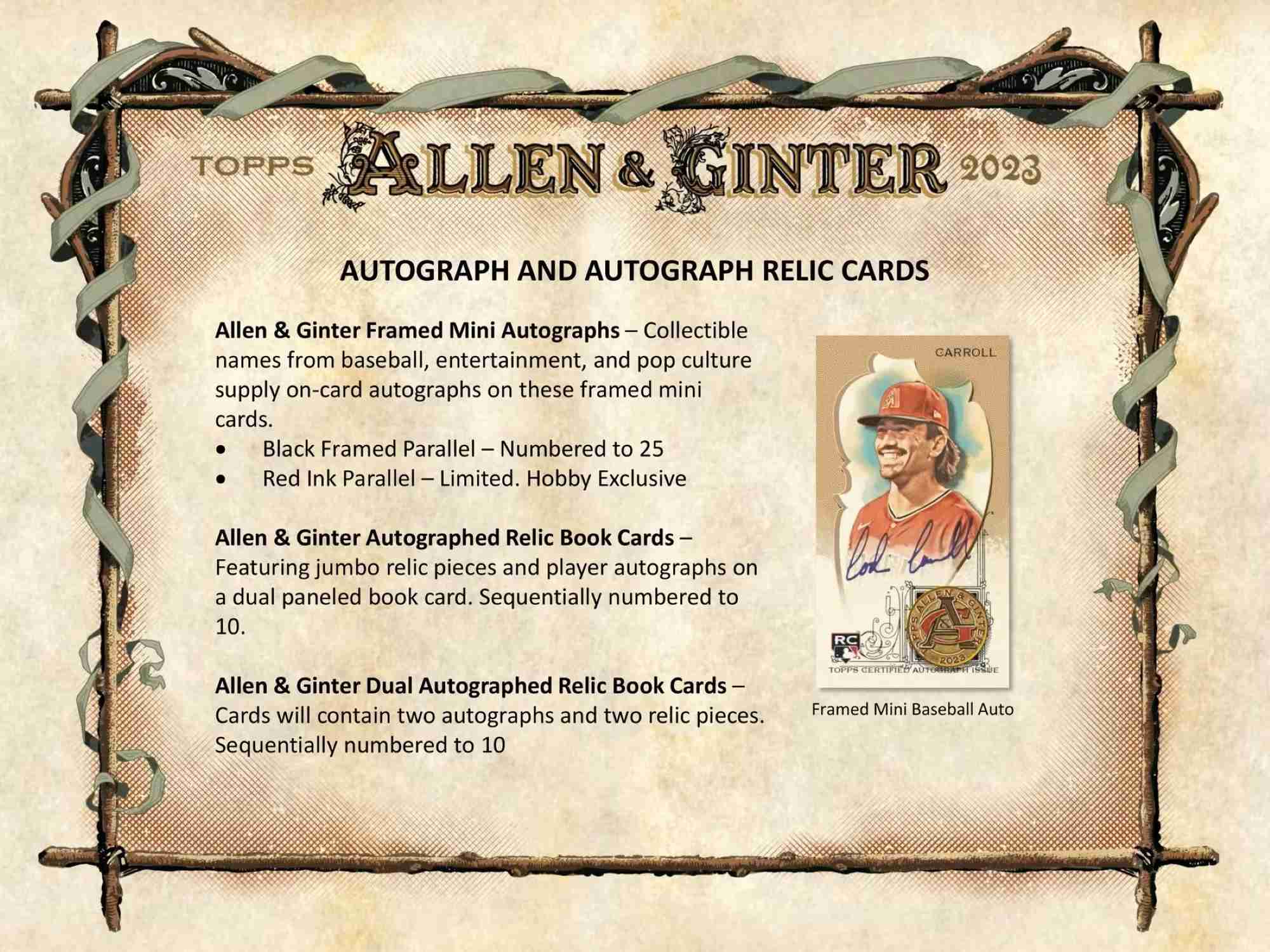 Allen & Ginter Dual Autographed Relic Book Cards: Cards will contain two autographs and two relic pieces. Sequentially numbered to 10.