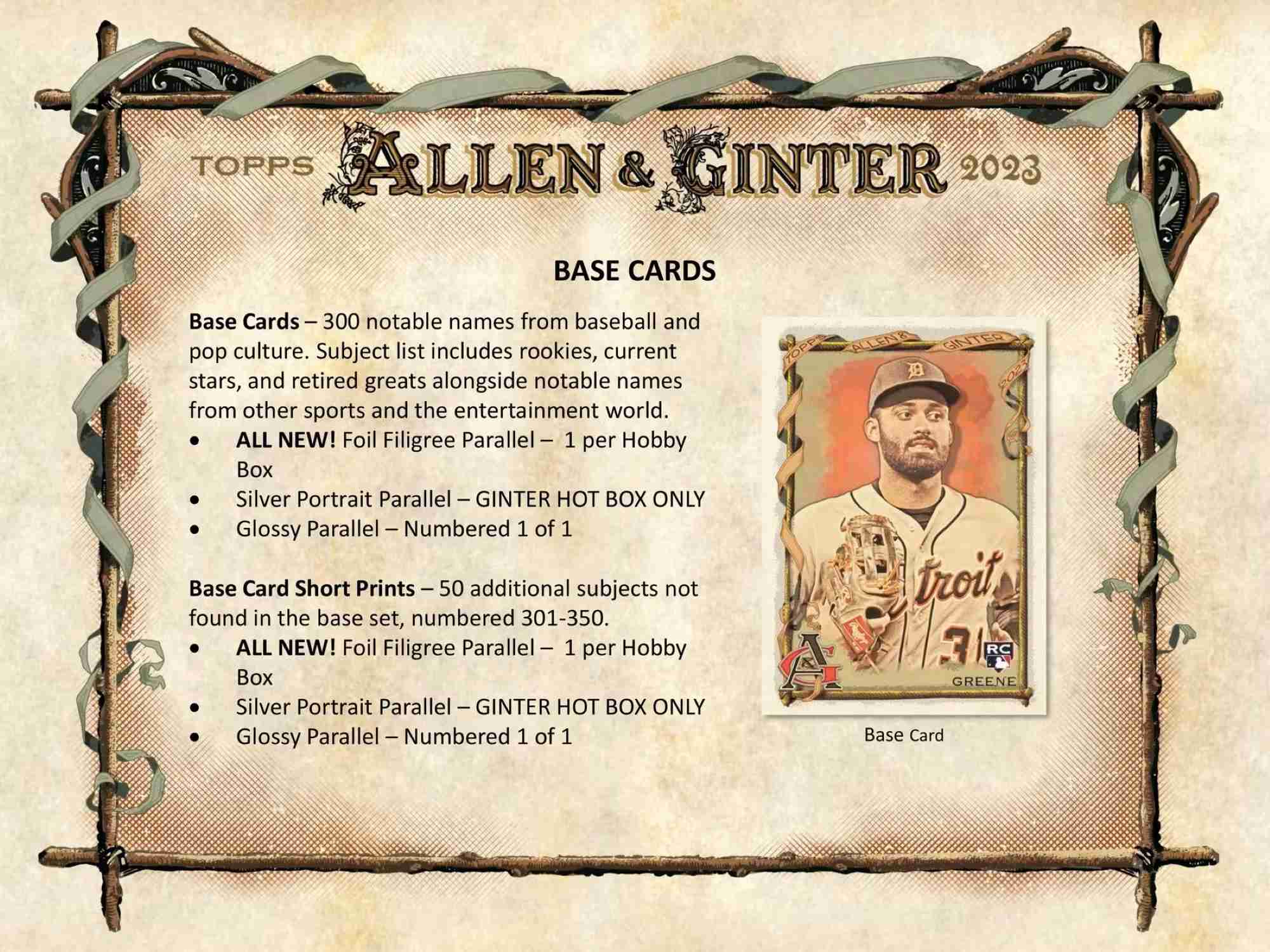 2023 Topps Allen & Ginter Baseball kommt 2023 wieder zurück in die Regale. Sammler sind eine perfekte Mischung aus MLB-Stars und Koryphäen aus anderen Sportarten, der Popkultur und mehr und werden überrascht sein, von wem und was sie in jeder Packung Karten erhalten.