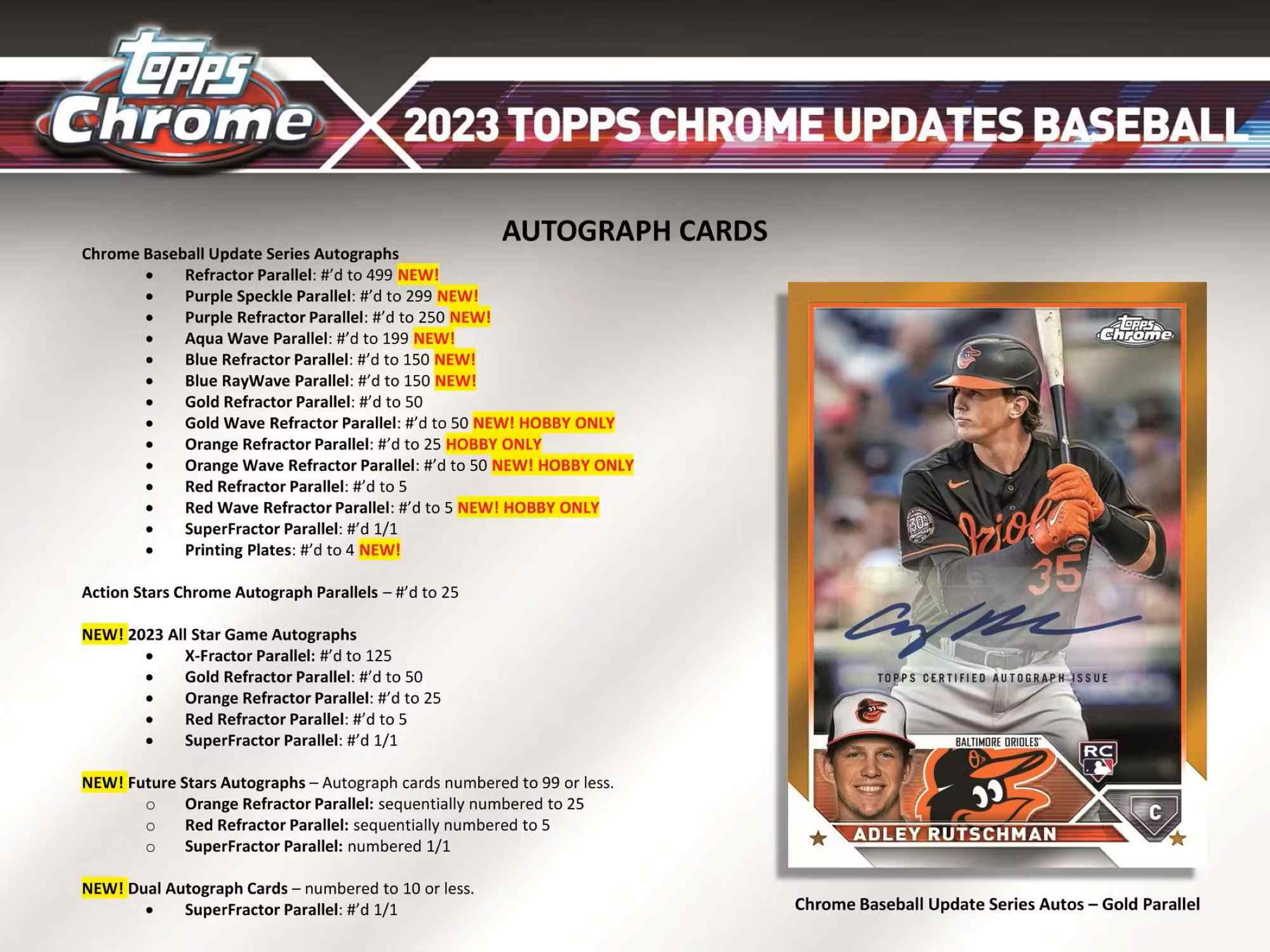 - Orange Refractor Parallel: #'d to 25 HOBBY ONLY