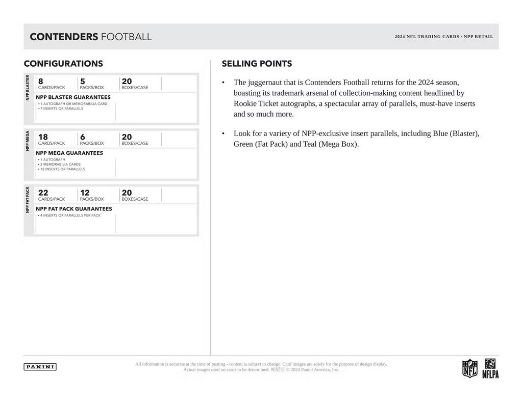Contenders Football ist der absolute Renner und kehrt für die Saison 2024 zurück - mit seinem einzigartigen Arsenal an Sammlerstücken, allen voran Rookie-Ticket-Autogrammen, einer spektakulären Auswahl an Parallelen, unverzichtbaren Inserts und vielem mehr.