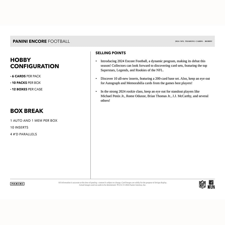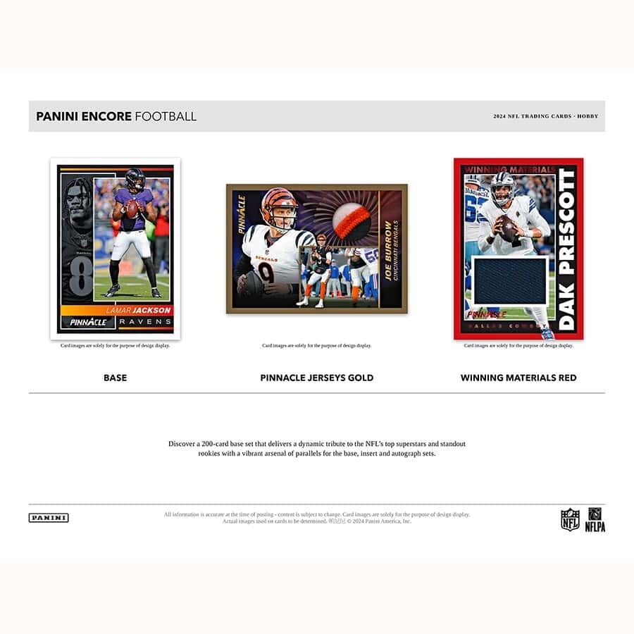 Mit 2024 Encore Football feiert eine dynamische neue Kollektion ihr Debüt! Sammler können sich auf eine aufregende Zusammenstellung freuen, die die größten Superstars, Legenden und Rookies der NFL vereint.