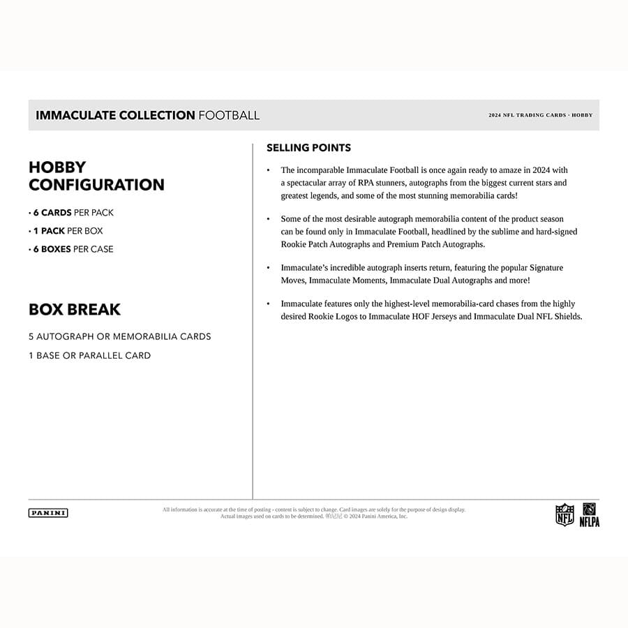 2024 Panini Immaculate Football NFL Hobby Box