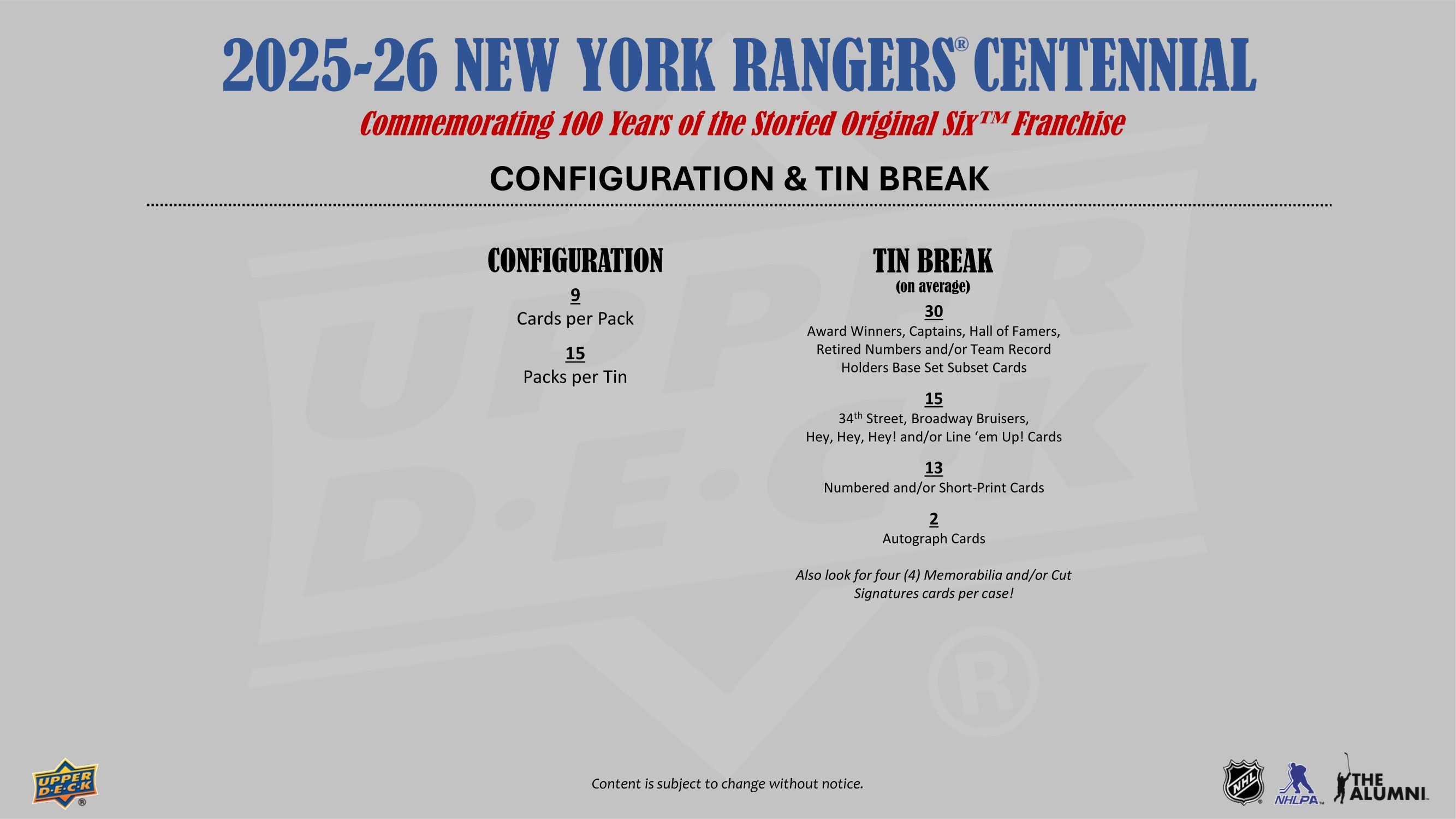 2025/26 Upper Deck New York Rangers 100 Years Centennial Hockey Hobby Tin