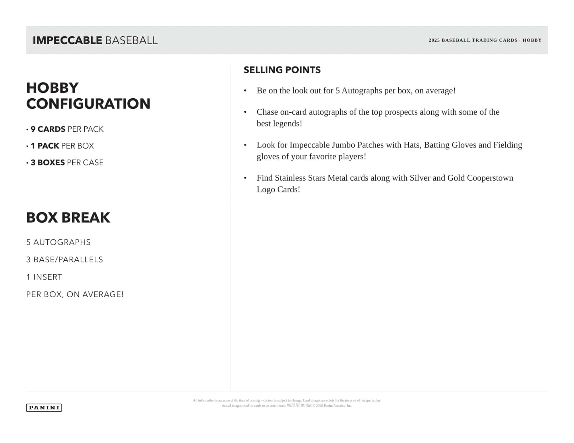 Mit einer eleganten Mischung aus On-Card-Autogrammen, seltenen Memorabilia-Karten und hochwertigem Design gehört Panini Impeccable Baseball zu den edelsten Releases des Jahres! Perfekt für alle, die auf der Suche nach Premium-Hits für ihre Sammlung - oder den nächsten Live Stream - sind.