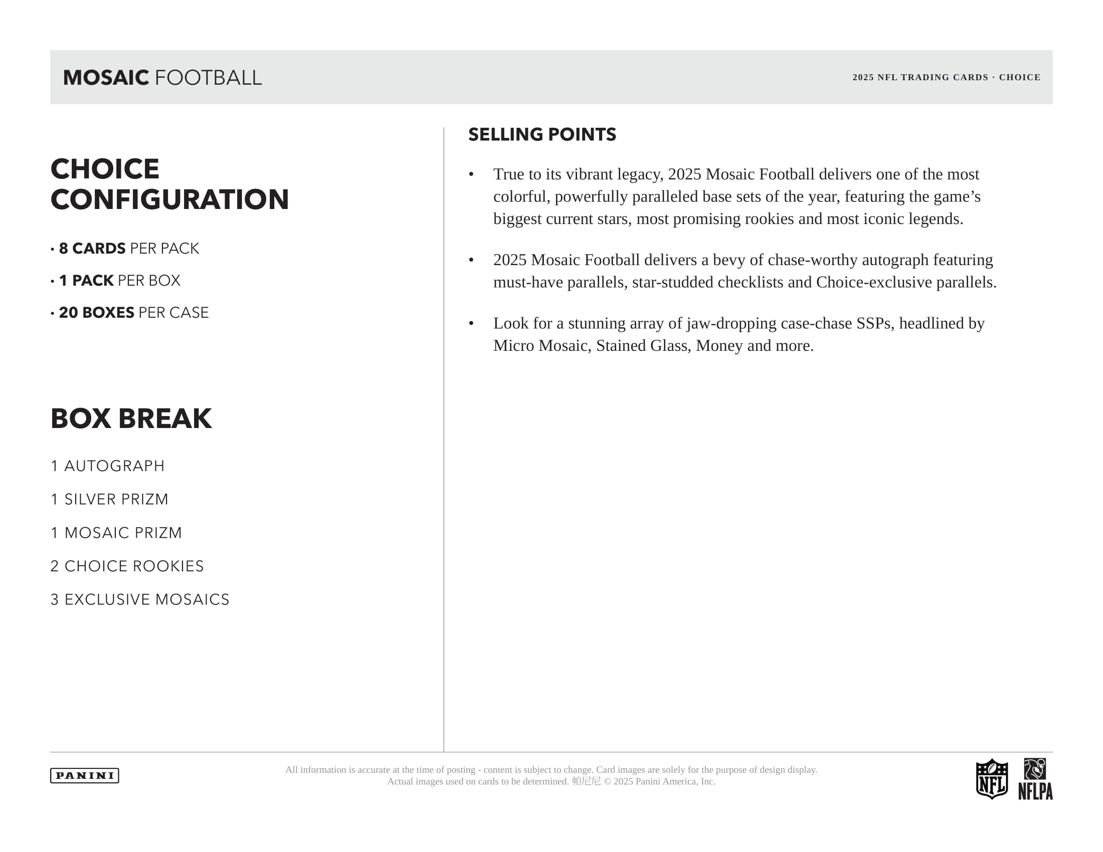 2025 Panini Mosaic Football NFL Choice Hobby Box