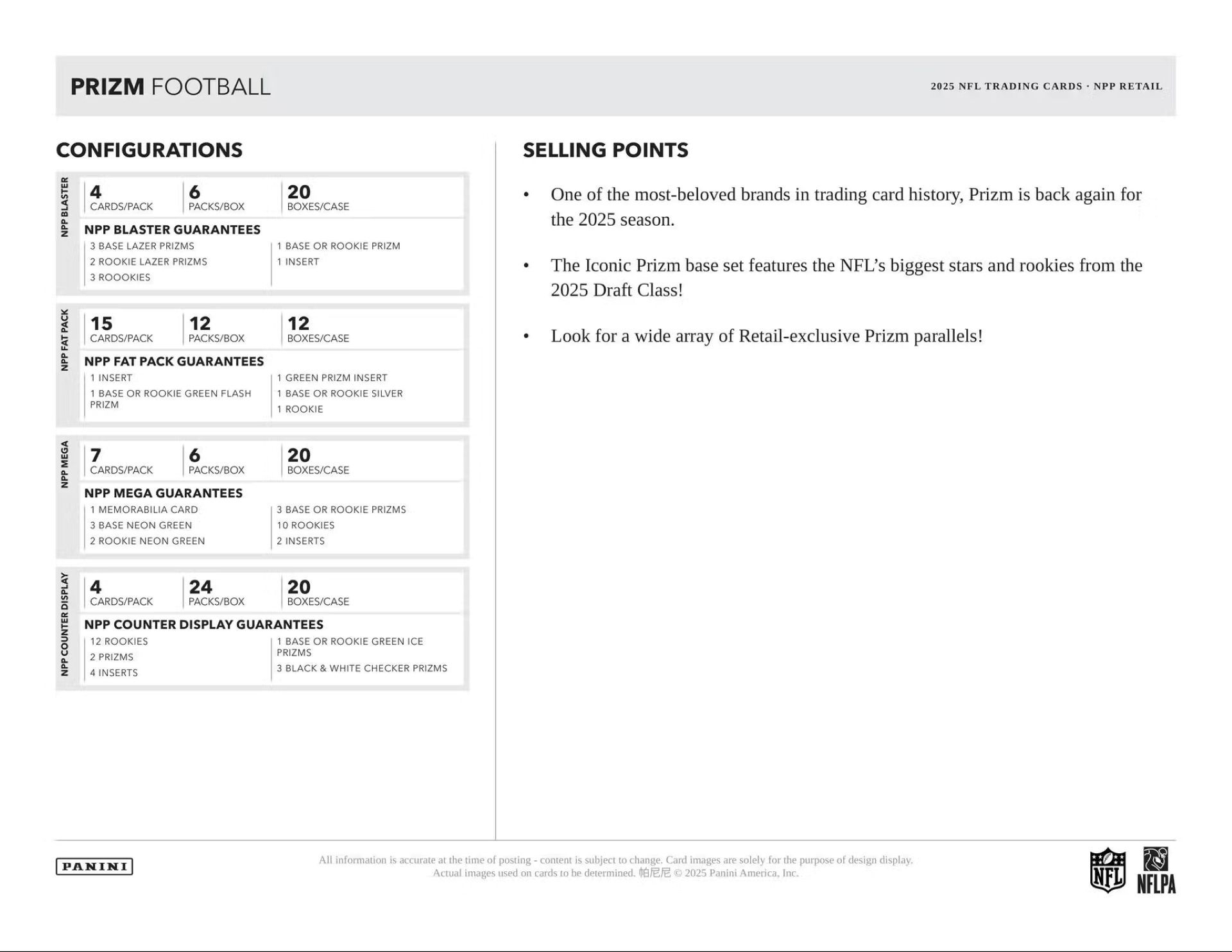 Panini Prizm Football 2025 - Farbe, Prestige und NFL-Star-Power in einer der stärksten Marken des Hobbys.