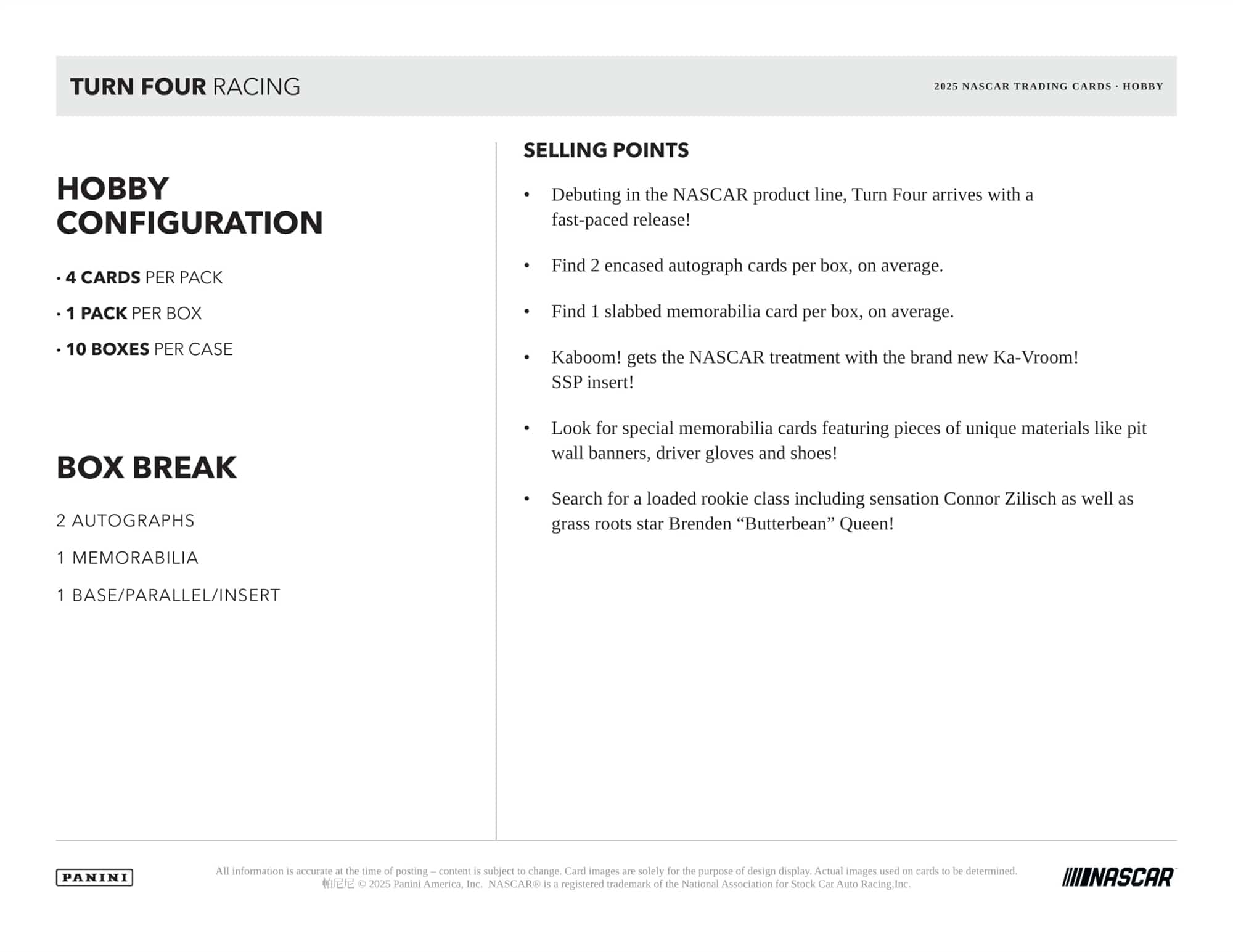 Panini Turn Four NASCAR 2025 - Geschwindigkeit, Adrenalin und Sammlerleidenschaft in einer Box!