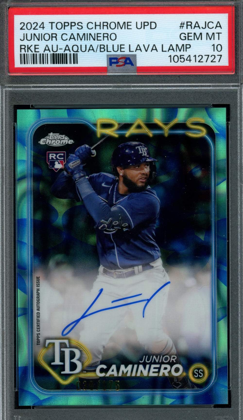Die Serie ist limitiert auf 50 Boxen! Finde ein Case Hit Autogramm von Paul Skenes (Trancendent RC #14/25)Junior Caminero (PSA10), Bo Jackson (Trancendent #05/10), Mike Trout (Gold #17/50), Cal Raleigh (RC 105/299), in jeder 10 Box !