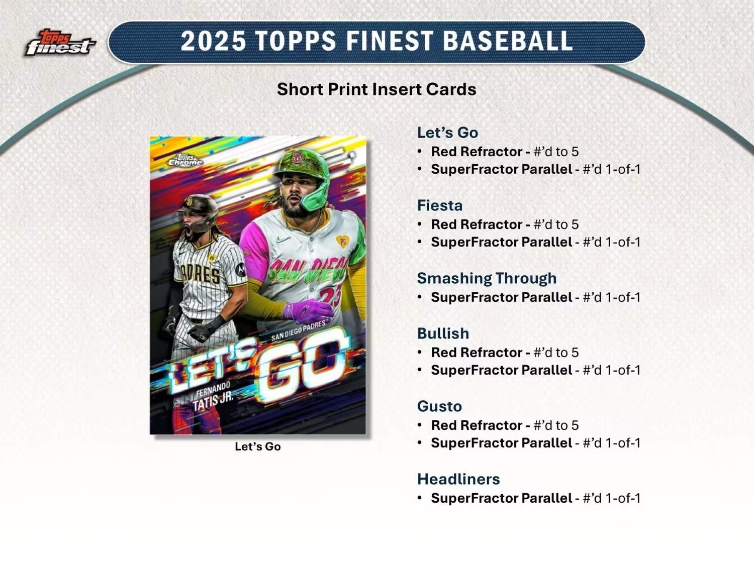 Topps Finest Baseball 2025 kehrt mit dem dreistufigen Basisset in neuem, farbenfrohem Design zurück.