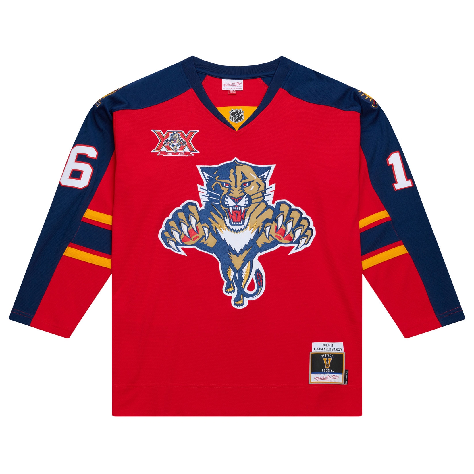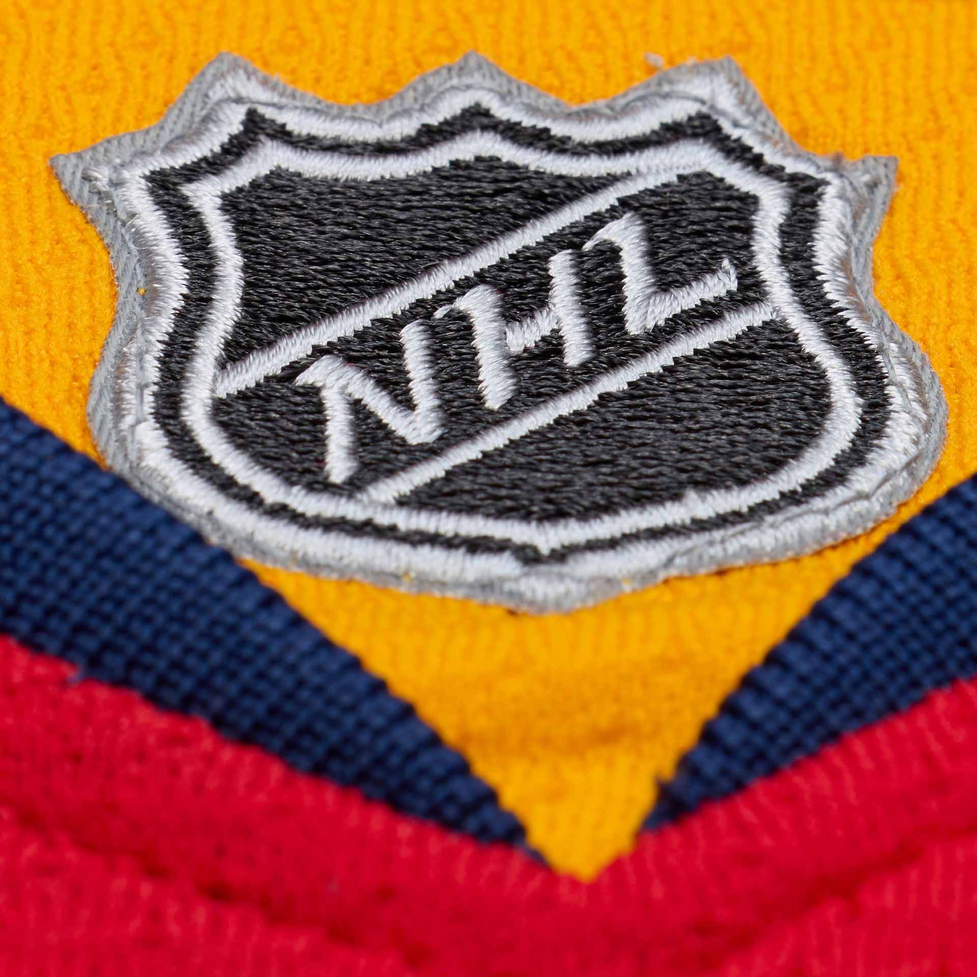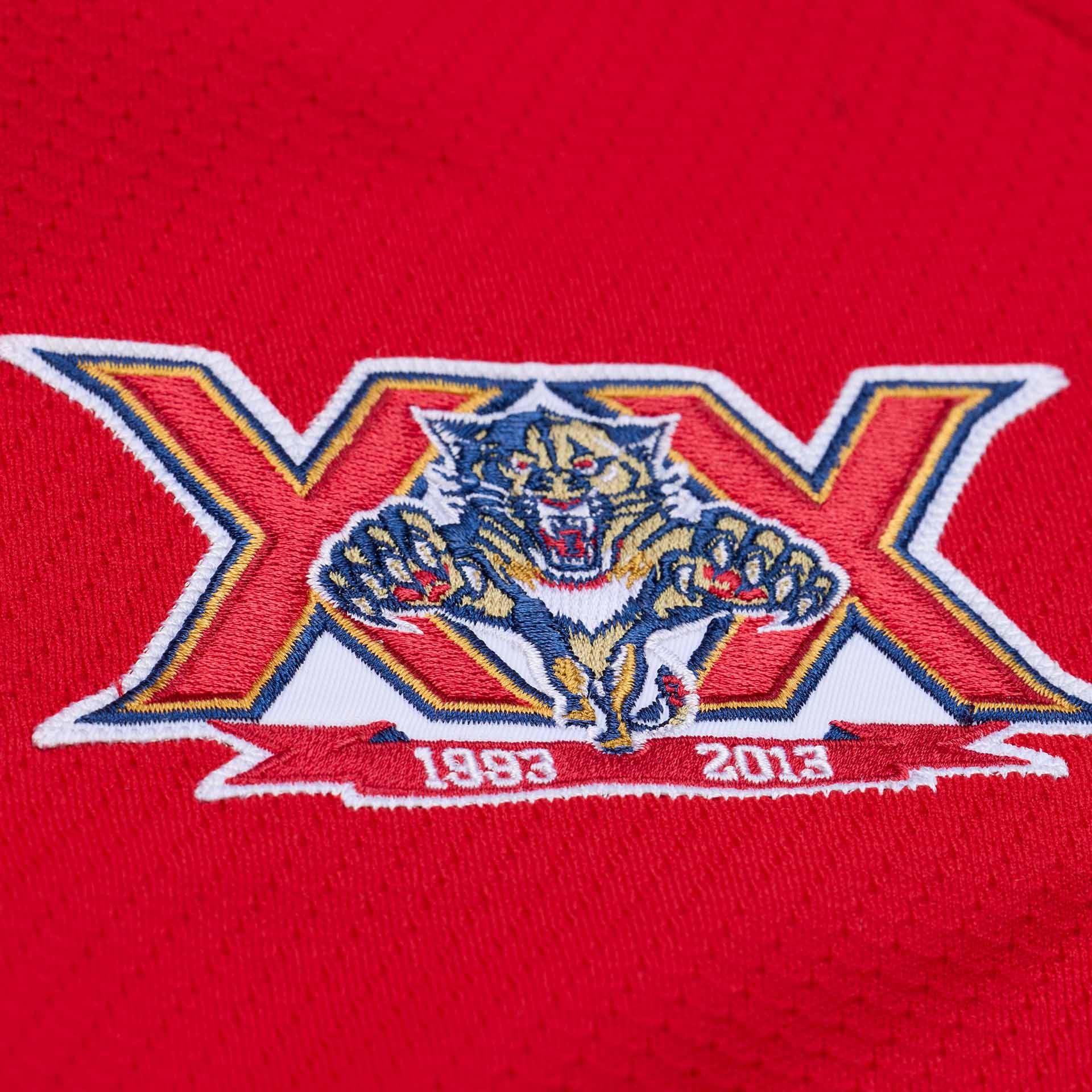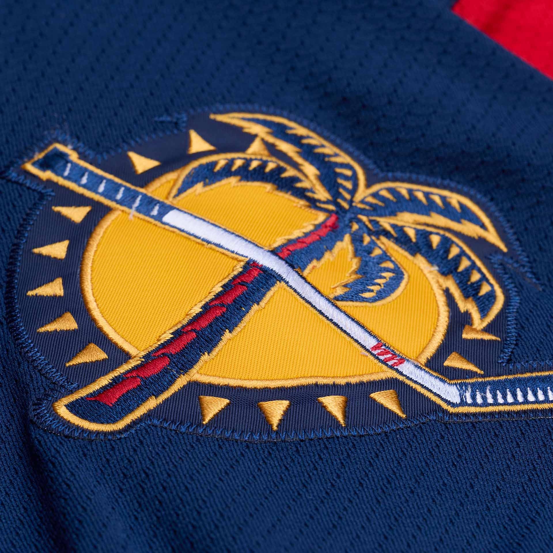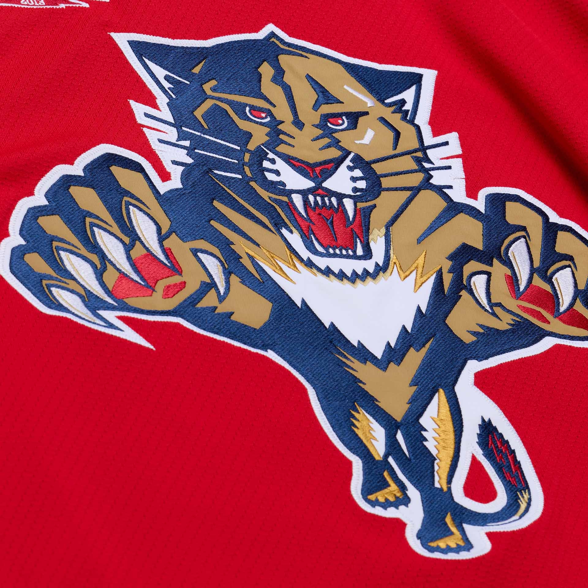 - Modern Vintage Look: Offizielles Florida Panthers Design der Saison 2013-14 in kräftigem Rot mit Navy- und Gold-Akzenten sowie großem, voll gesticktem Teamlogo auf der Brust.
