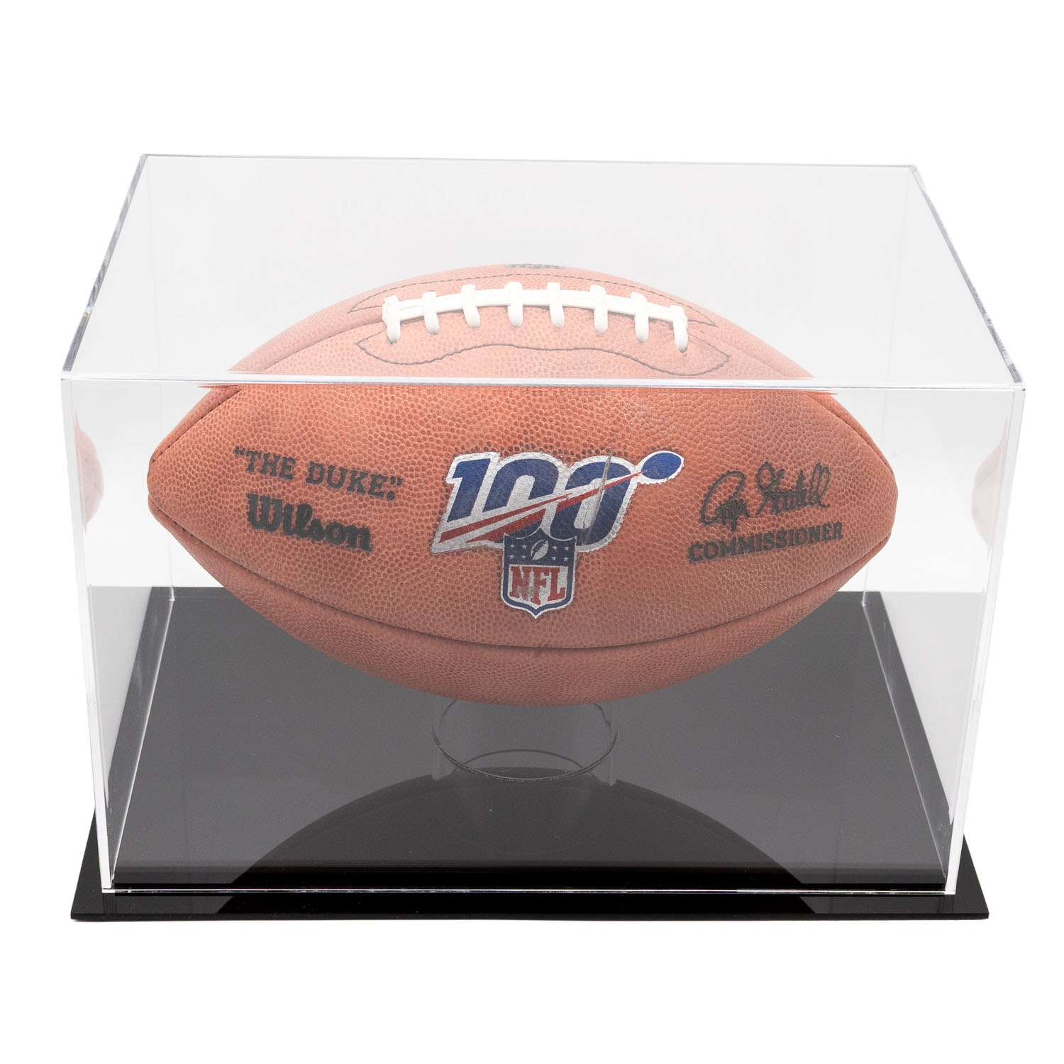 Das TAASS.com Acrylic Football Display Case bietet kristallklare Sicht, UV-Schutz und sicheren Stand.