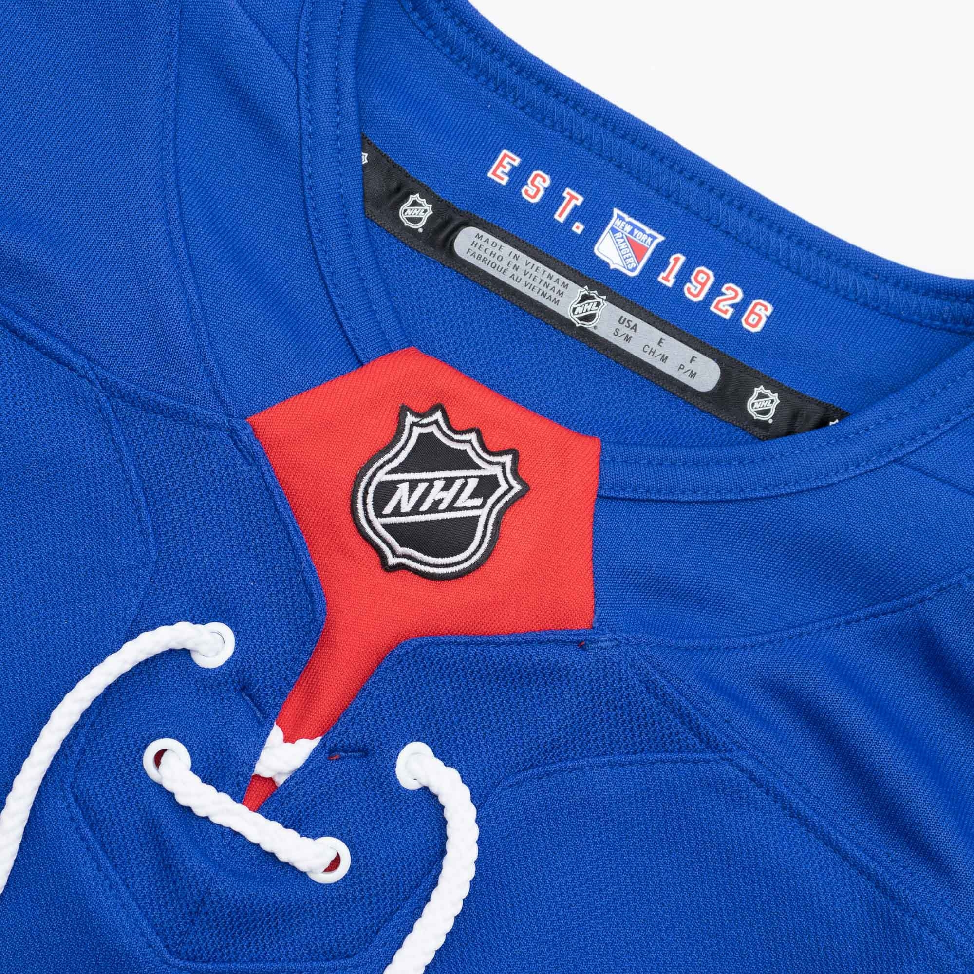 Mit den Premier NHL Kindertrikots können auch die kleinsten New York Rangers Fans den größten Support leisten. Die Kindertrikots entsprechen dem originalen Design der NHL Spielertrikots und überzeugen mit der hochwertigen Premier-Verarbeitung. Alles Logos, Namen und Nummer sind hochwertig aufgenäht und die Nähte sind robust verarbeitet, sodass die Trikots auch dem größten Spieltrieb standhalten. Dieses Trikot hat den Namen PANARIN und die Nummern 10 aufgenäht. Der qualitativ hochwertigen Polyesterstoff überzeugt mit den elastischen Stretch-Einlagen und hat extra durchlässige Stoffeinlagen zur besseren Belüftung. Mit diesem NHL Trikot für Kinder und Jugendlichen machst du jedem jungen New York Rangers Fan eine riesige Freude.