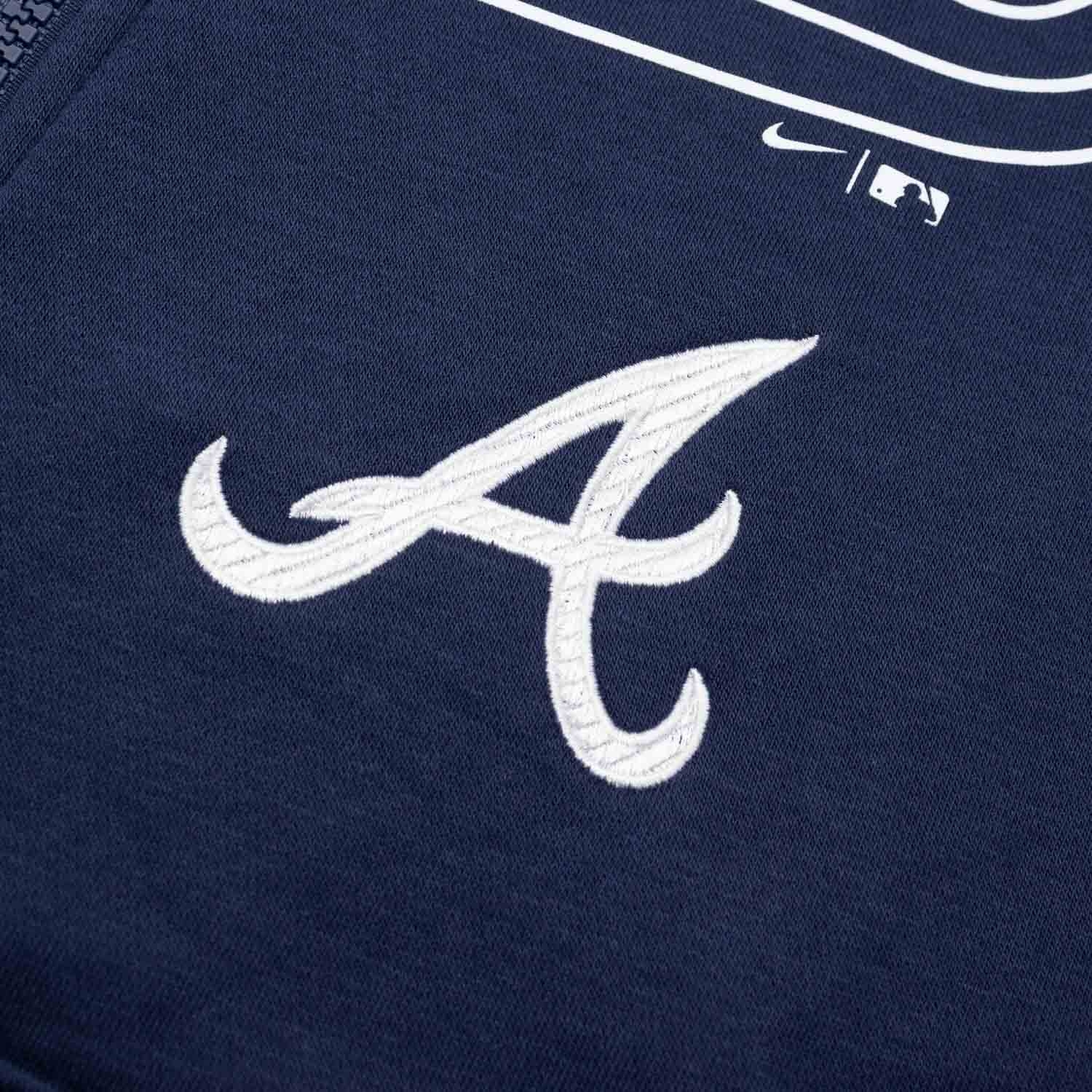 Nike MLB Herren Club Fleece Zipper von deinen Atlanta Braves im Knockout Script Style.