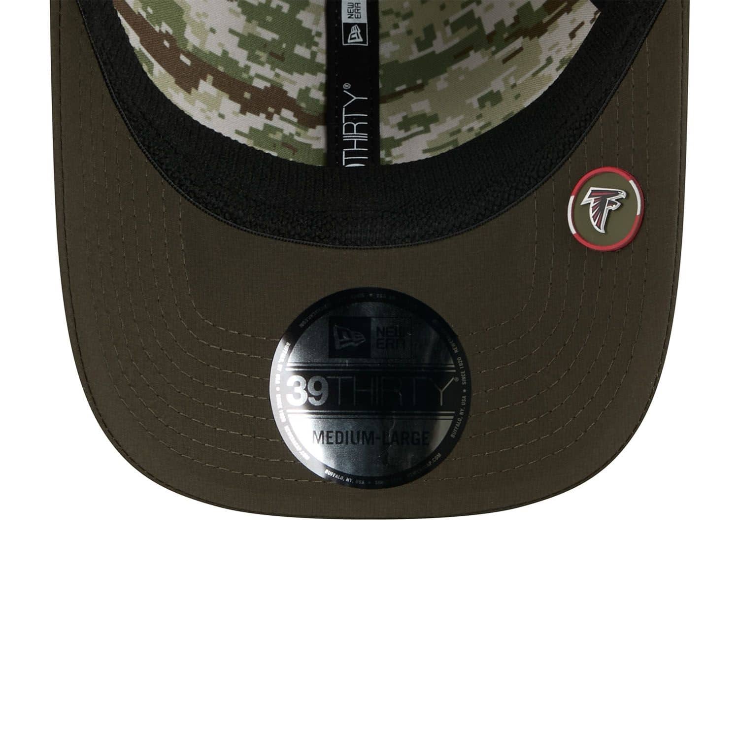 New Era American Football Cap von deinen Atlanta Falcons im Stretch-Fit 39THIRTY Style aus der offiziellen On-Field 2025 NFL Salute to Service Kollektion.
