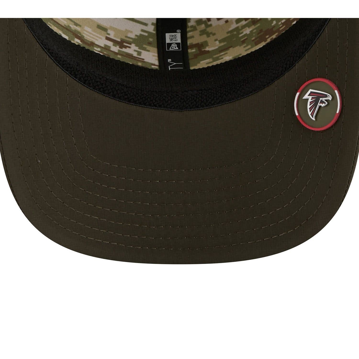 New Era American Football Snapback Cap von deinen Atlanta Falcons im 9SEVENTY Trucker Style aus der offiziellen On-Field 2025 NFL Salute to Service Kollektion.