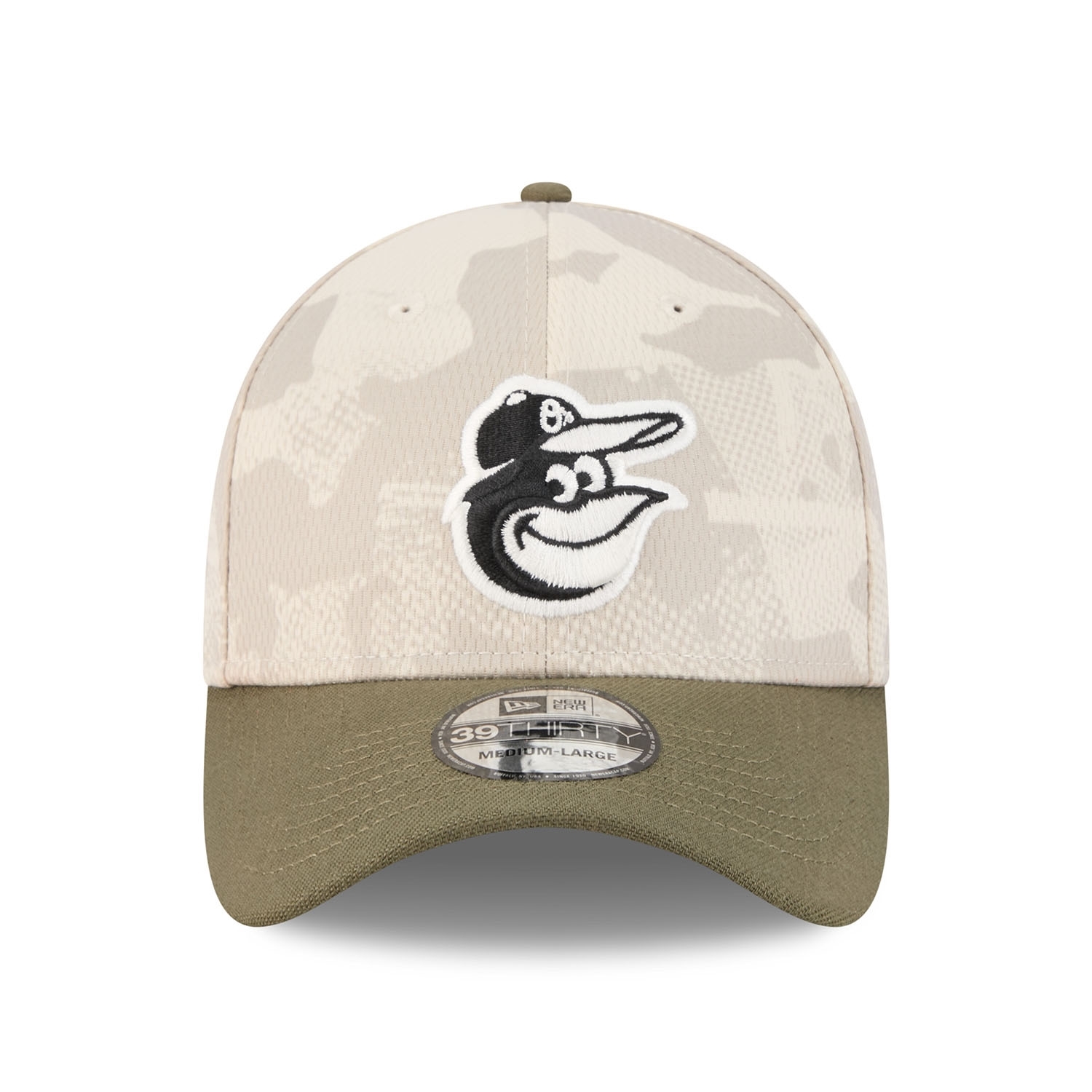New Era Baseball Stretch-Fit Cap von deinen Baltimore Orioles im 39THIRTY Style aus der 2025 MLB Armed Forces Day Kampagne.