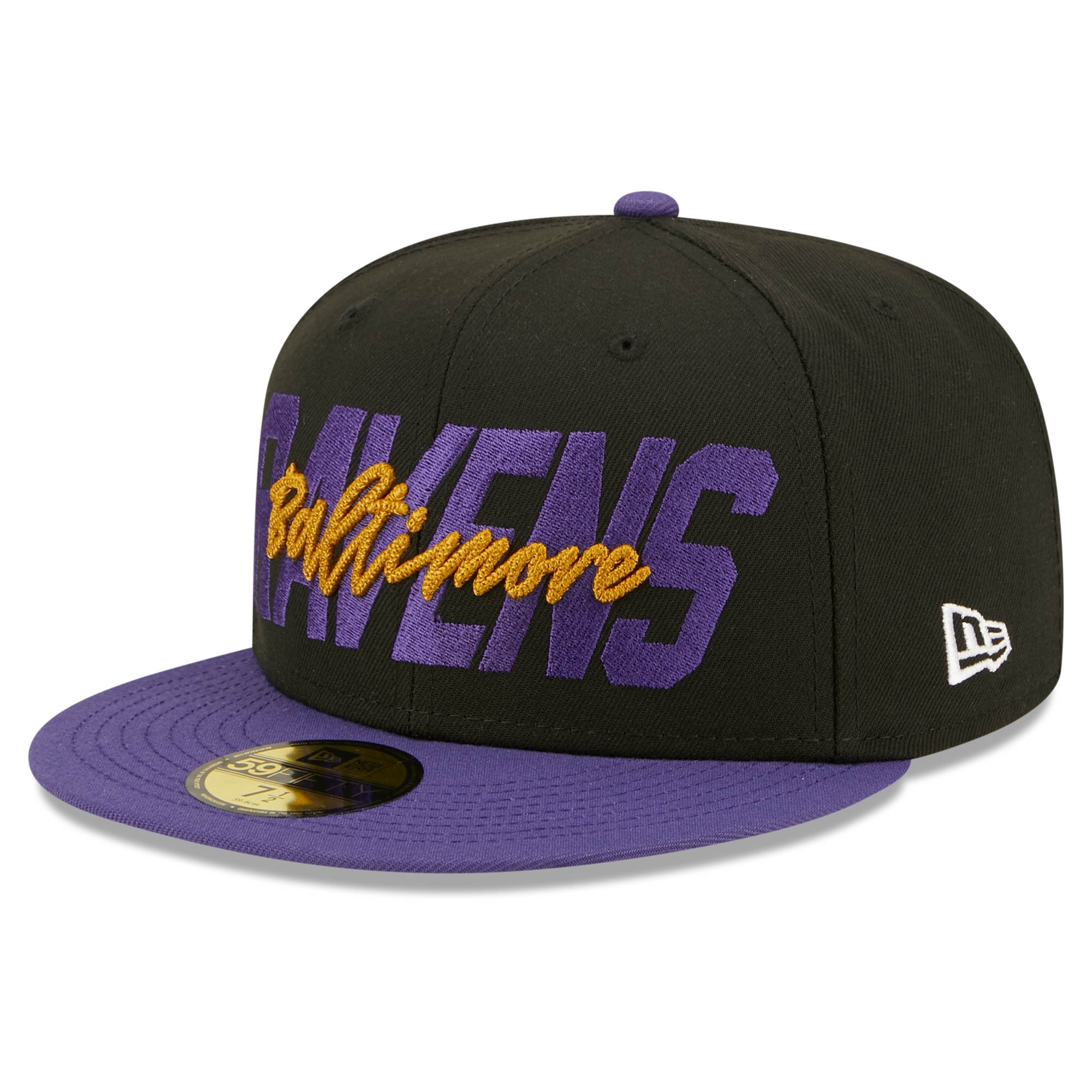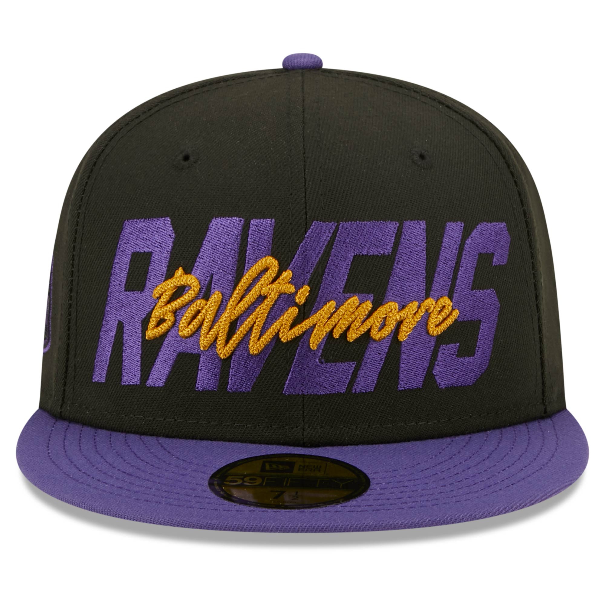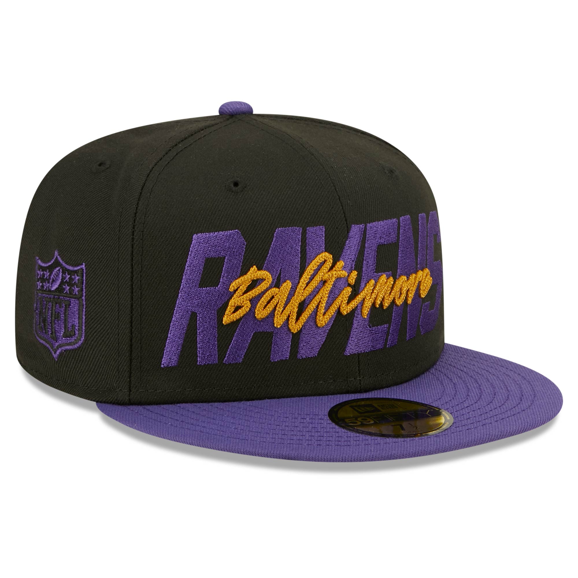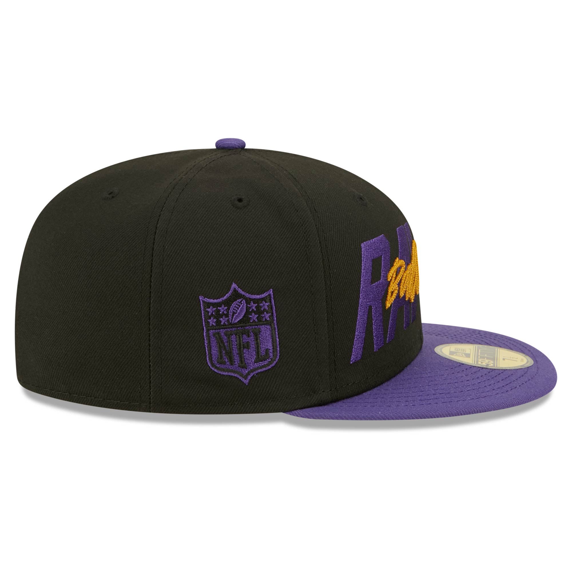 New Era American Football Fitted Cap von deinen Baltimore Ravens im 59FIFTY Style aus der offiziellen On-Stage 2022 NFL Draft Kollektion.