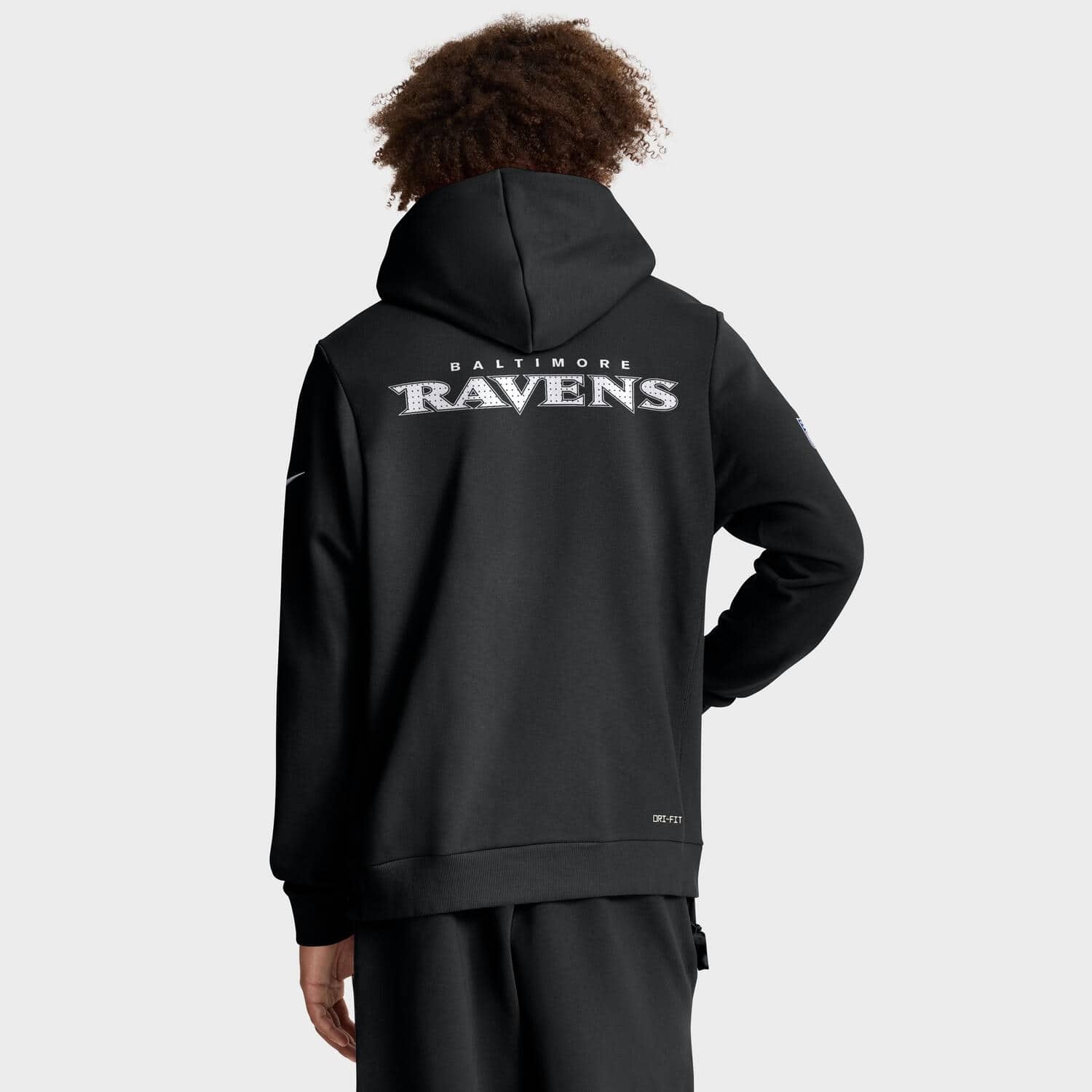 - Baltimore Ravens-Backprint im offiziellen Wordmark-Design auf dem Rücken