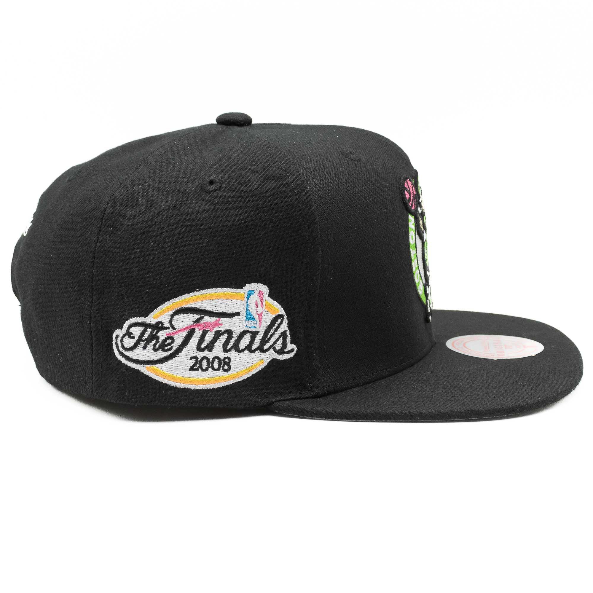Mitchell & Ness NBA Original Fit Basketball Snapback Cap von deinen Boston Celtics im Neon Tropical Style mit The Finals Side Patch.