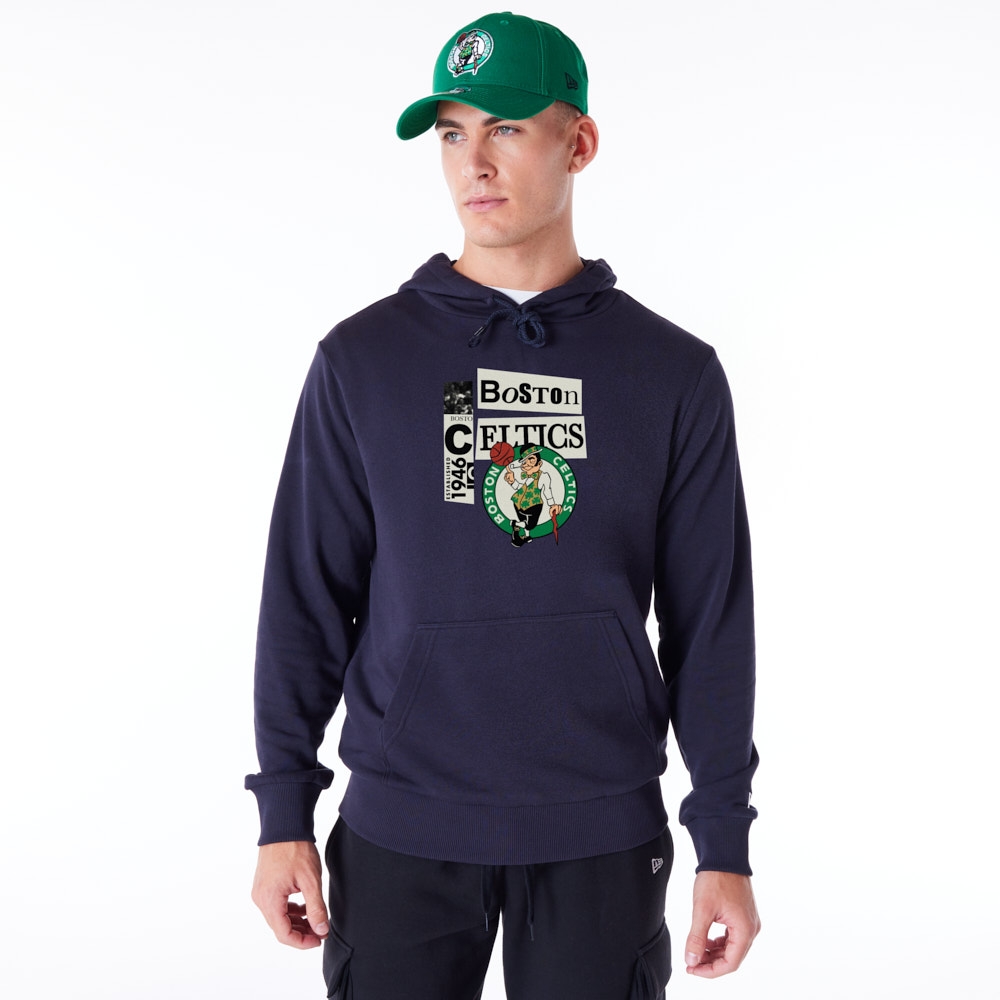 Boston Celtics Newspaper Script New Era NBA Hoodie Navy