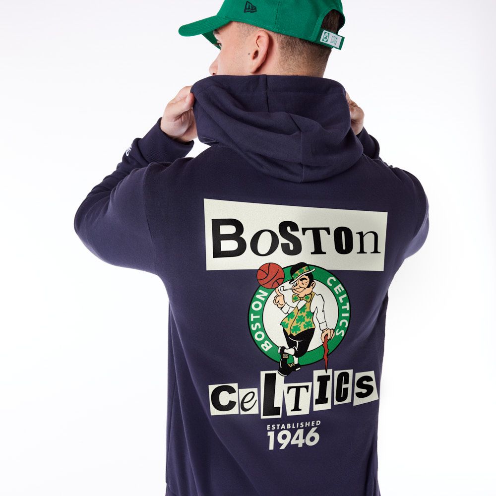 New Era NBA Basketball Hoodie von deinen Boston Celtics im Newspaper Script Style.