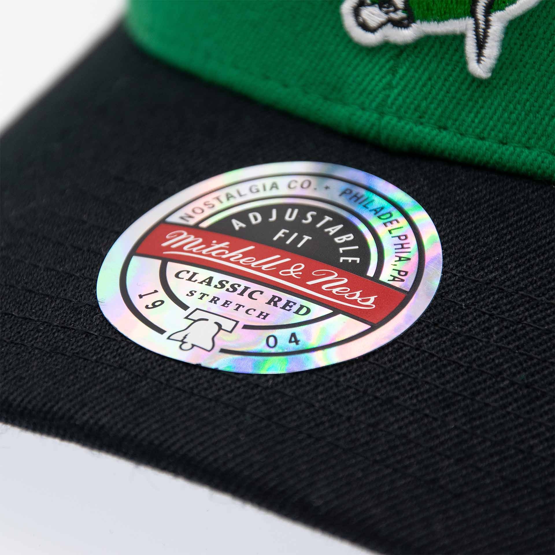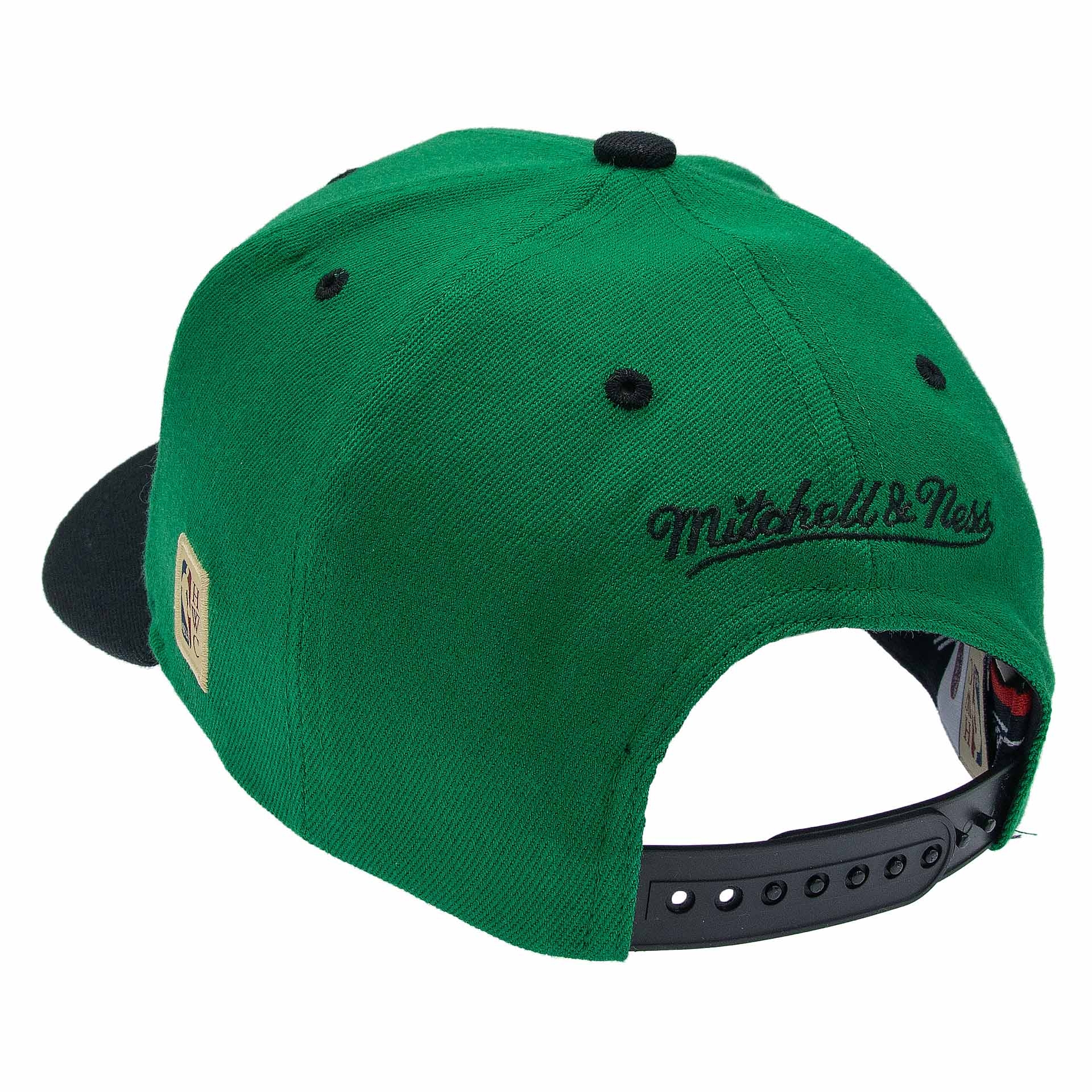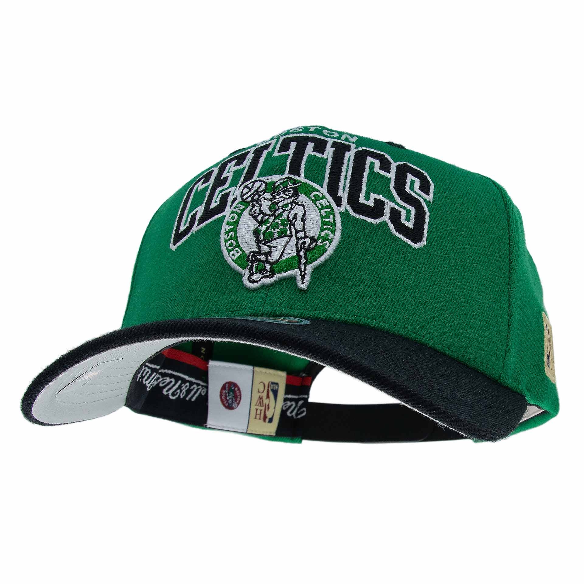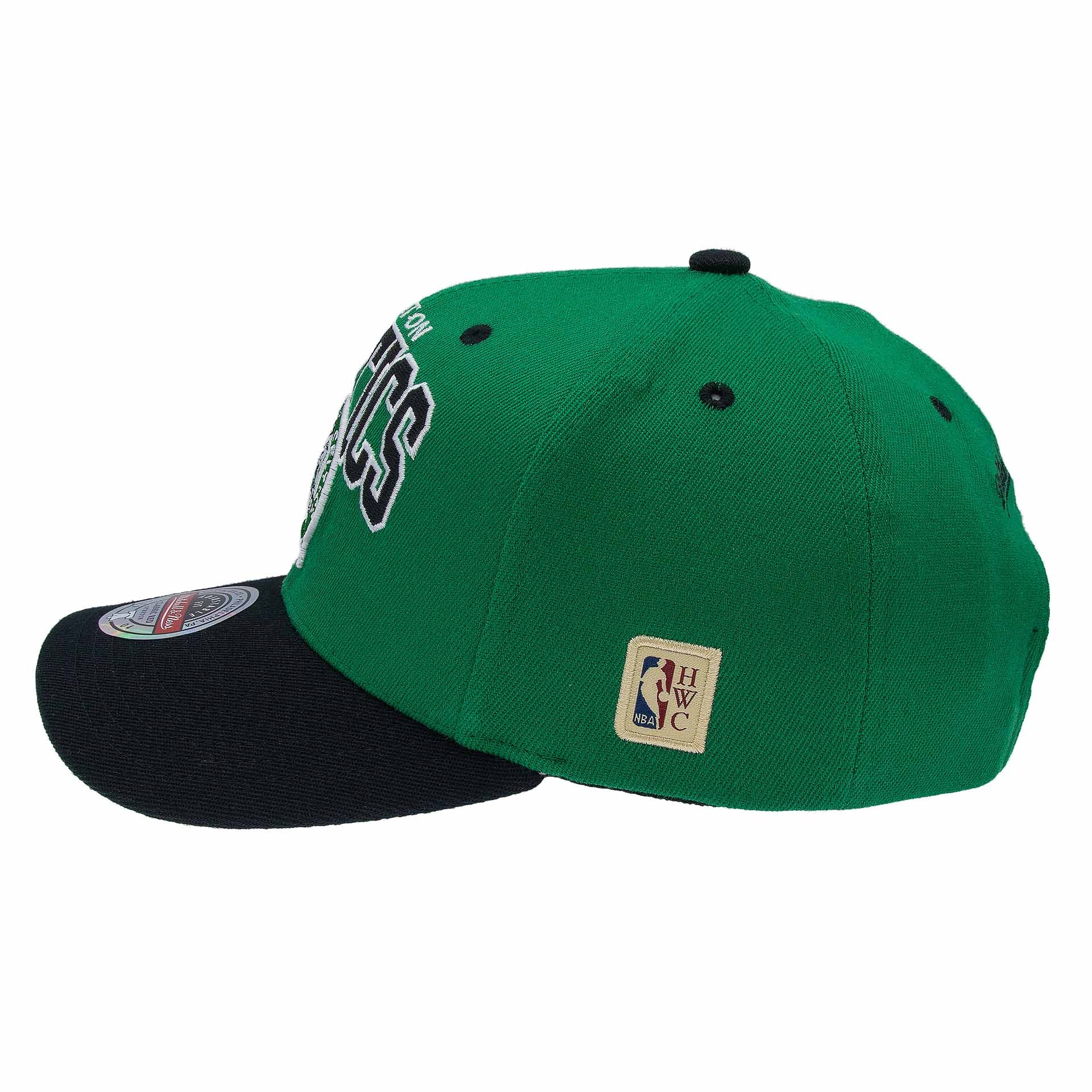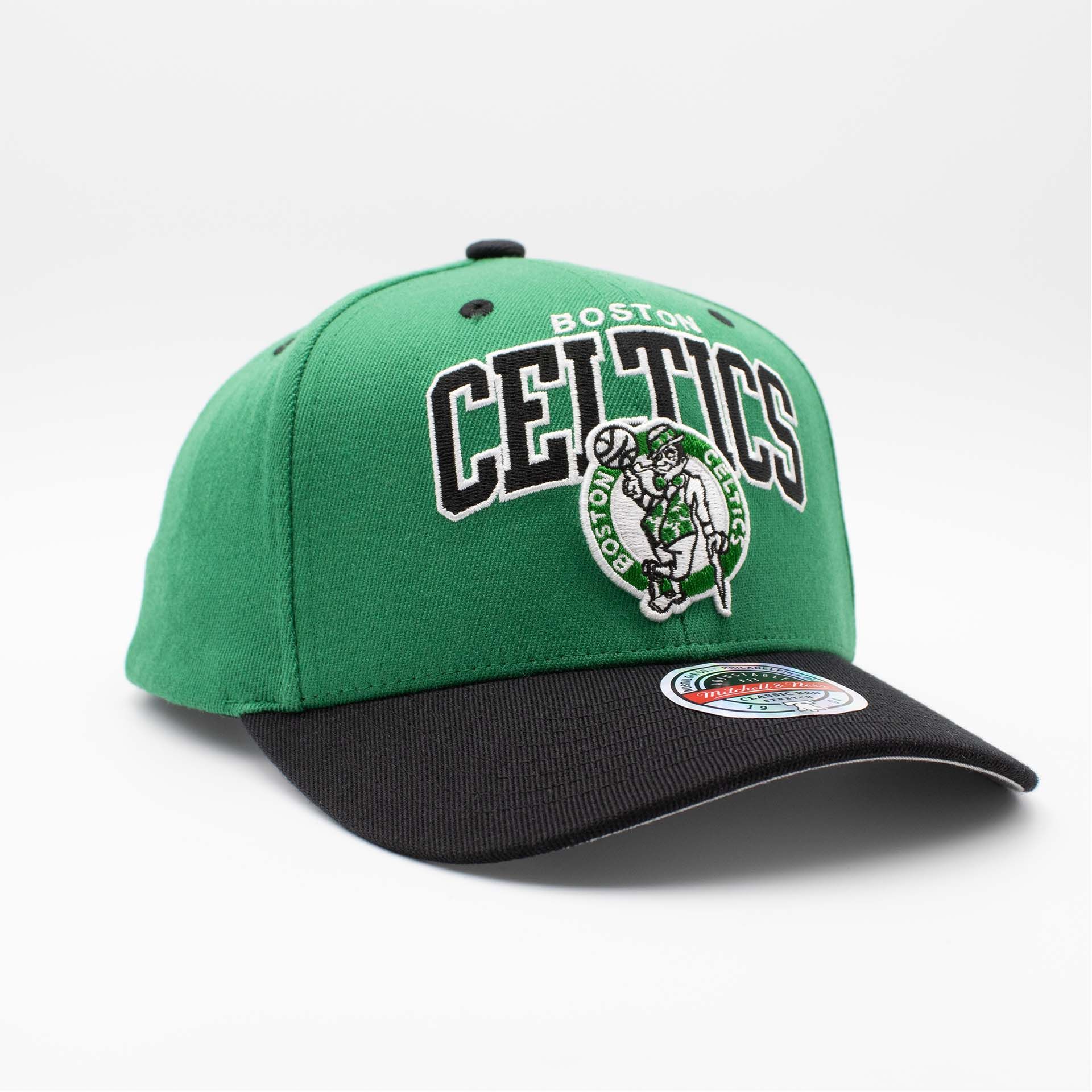 Mitchell & Ness NBA Adjustable Stretch-Snap Cap von deinen Boston Celtics im Team Arch Style.