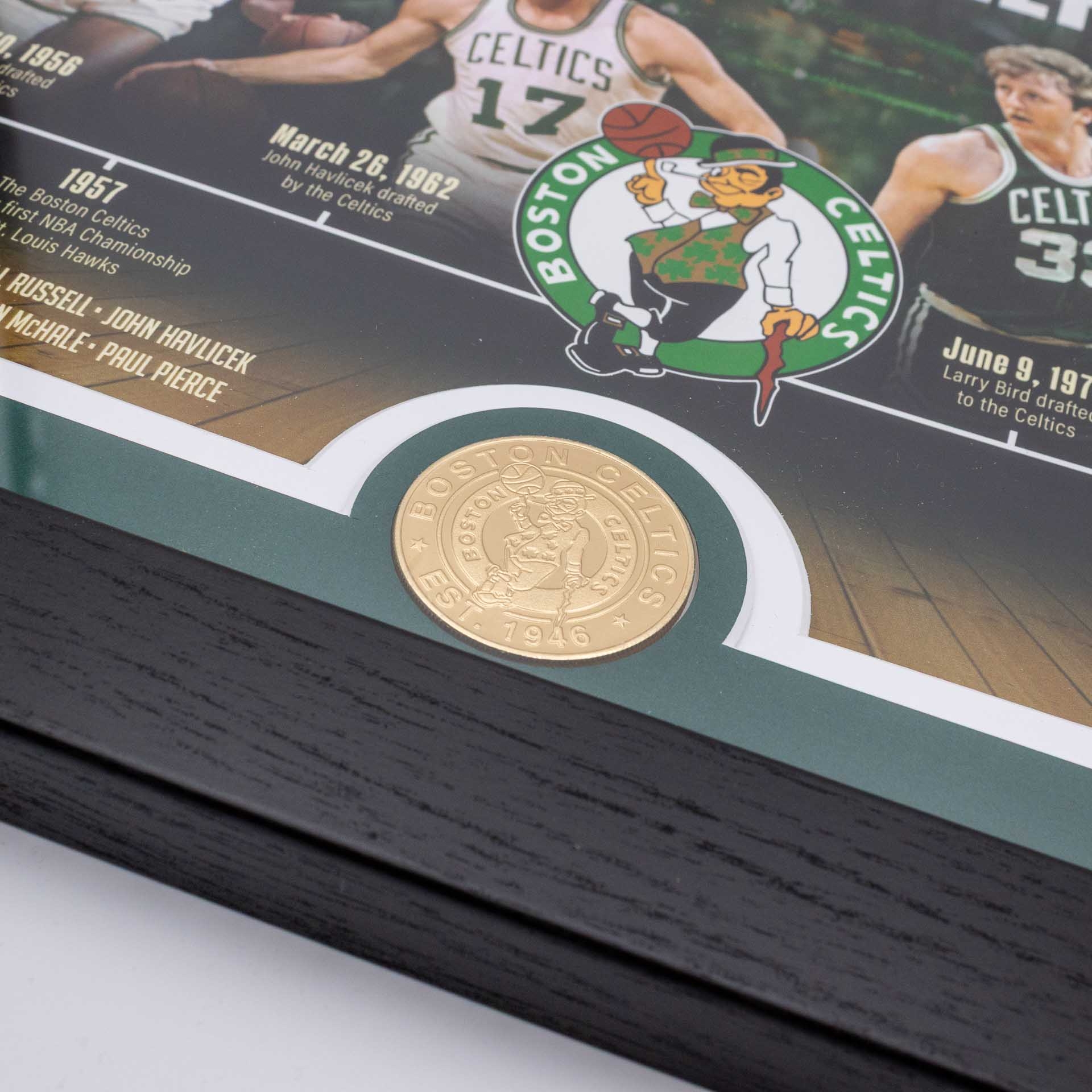Highland Mint NBA gerahmtes Bild von deinen Boston Celtics im Vintage Timeline Design mit Gedenkmünze.