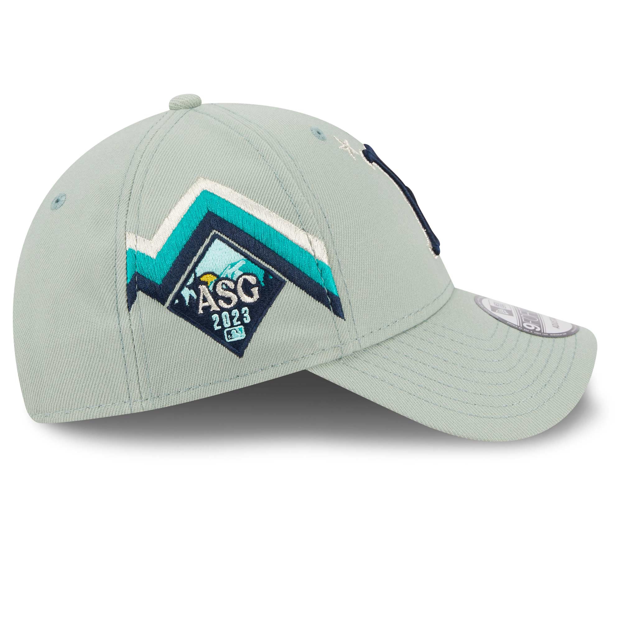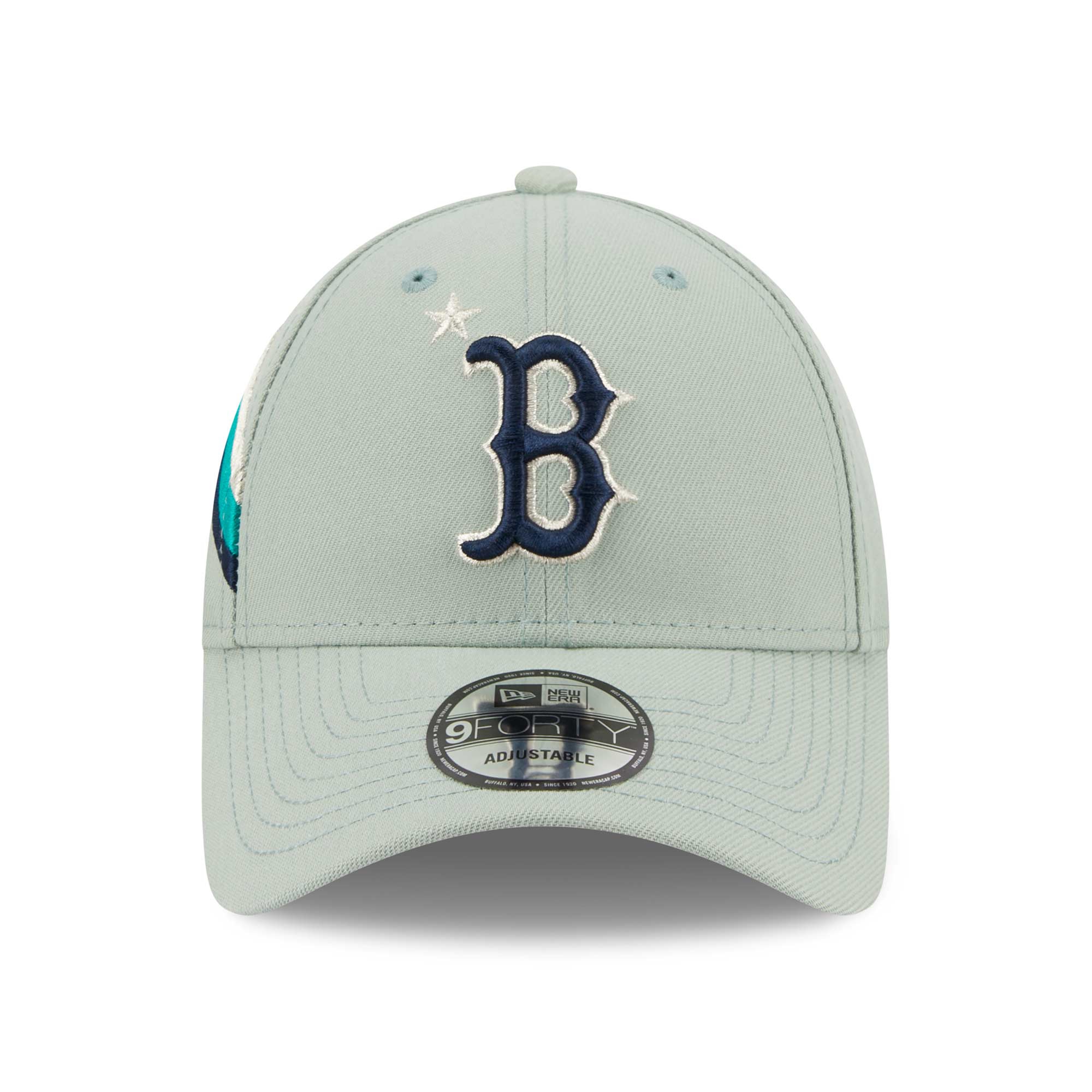 Die mintgrüne 2023 MLB All-Star Game Adjustable Cap zelebriert mit der besonderen Farbgebung den Spielort Seattle und sorget für einmaligen Team-Support. Die Cap-Vorderseite ist mit dem zweifarbigen Boston Red Sox Teamlogo im silber-blauen Look dekoriert. Als besonderes Extra ist die rechte Capseite mit dem 2023 ASG Logo und dynamischen Streifen bestickt. Die Schirmunterseite ist navyblau.