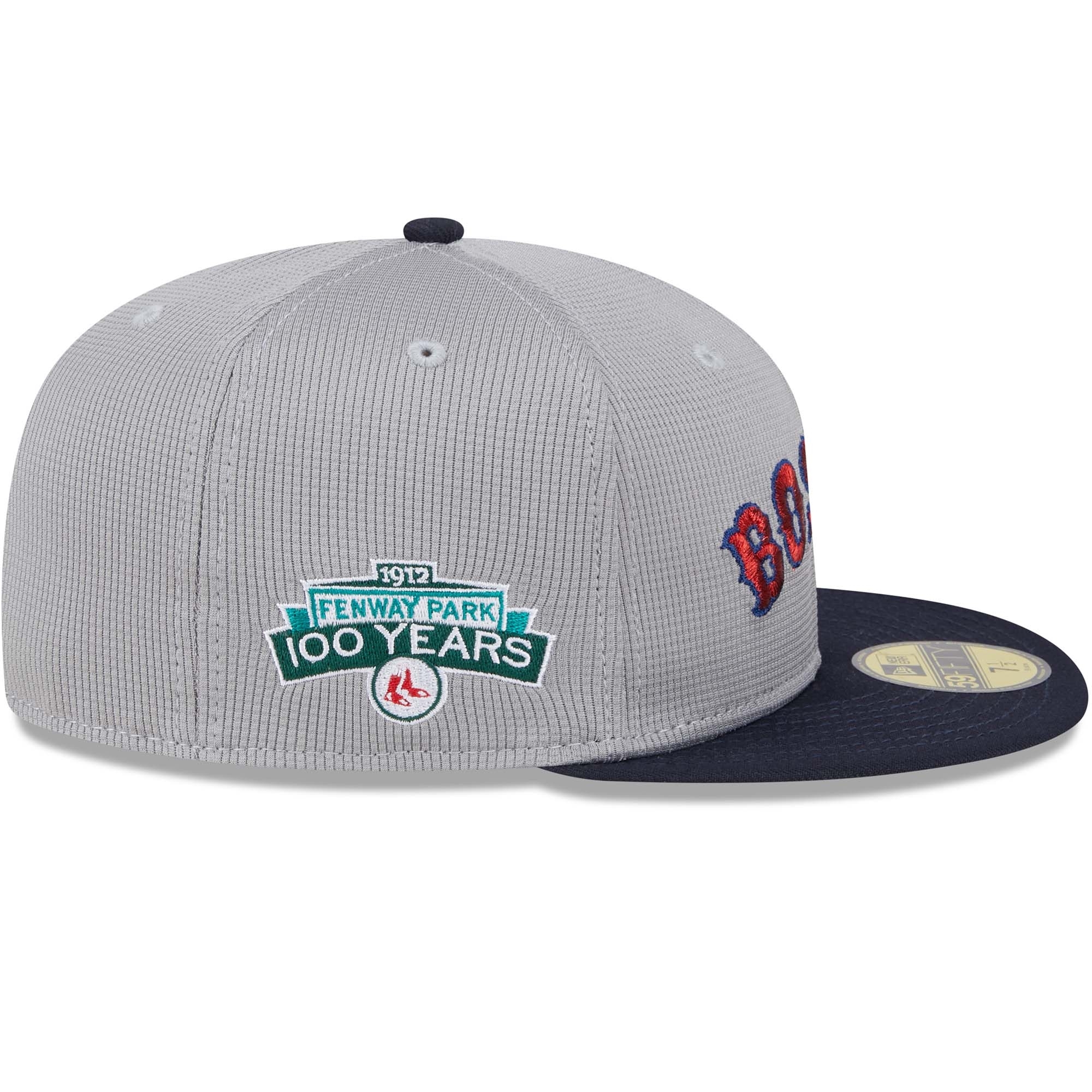 New Era Baseball 59FIFTY Fitted Cap von deinen Boston Red Sox im grauen Pivot Mesh Design mit Fenway Park Side Patch.