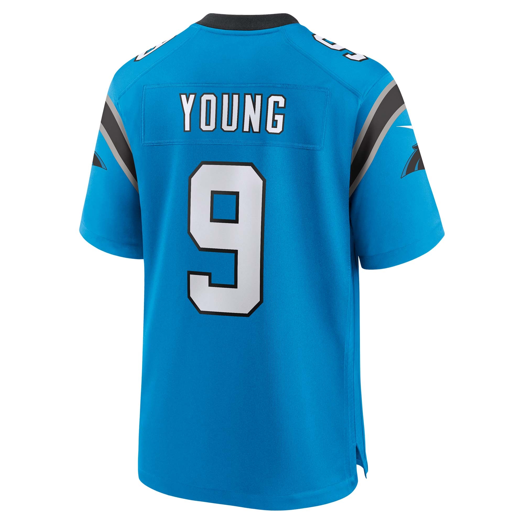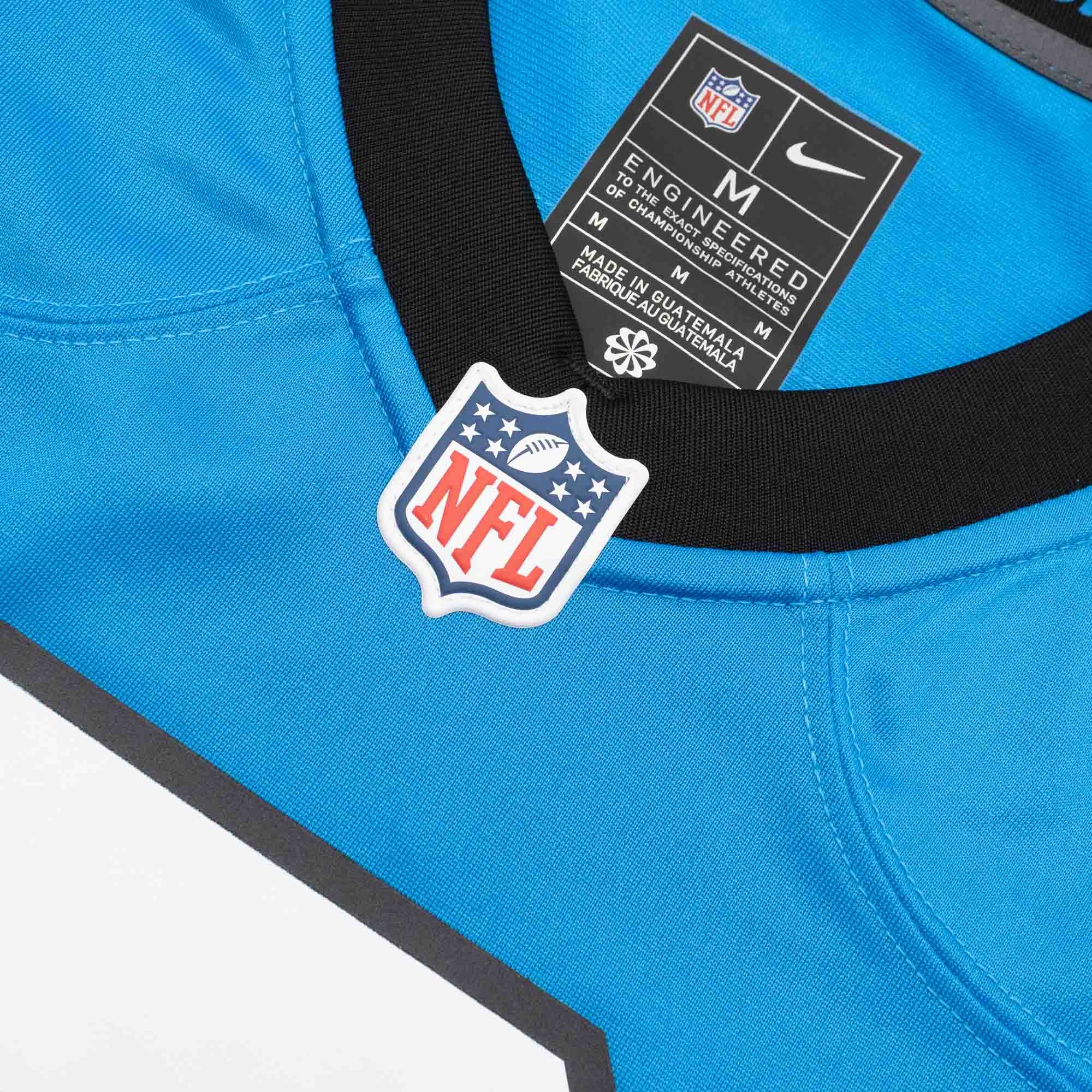 Nike NFL Herren American Football Trikot von Carolina Panthers Quarterback Bryce Young im blauen Game Style.