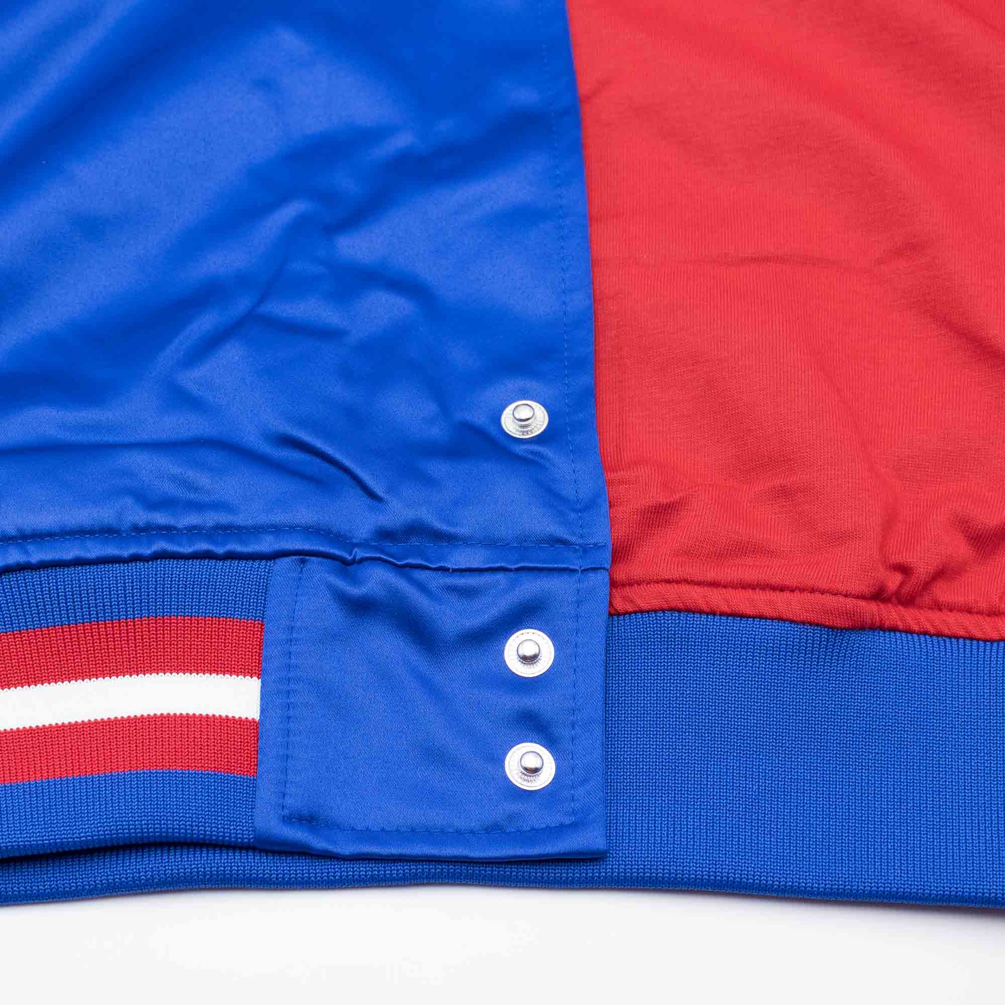 Premium Mitchell and Ness Buffalo Bills Retro Jacke mit klassischer Satin-Außenhülle aus der NFL Throwbacks Kollektion. Die NFL Jacke hat zwei äußere Taschen, eine Innentasche und eine durchgehende Knopfleiste. Das Design ist den amerikanischen College und High School Jacken nachempfunden und der Mitchell & Ness Schriftzug ist wie immer am rechten Ärmelsaum aufgestickt. Auf der Front ist der klassische BILLS Schriftzug hochwertig aufgenäht. Unter dem Kragen auf der Innenseite sind außerdem das NFL Throwbacks und das Mitchell & Ness Logo aufgenäht. Das weiche Jersey-Inlay sorgt für ein absolut angenehmes Tragegefühl. Mit dem eindeutigen NFL Style ist diese leichte Jacke ein perfekter Begleiter für die Übergangszeit im Herbst, Frühling oder in kühlen Sommernächten.