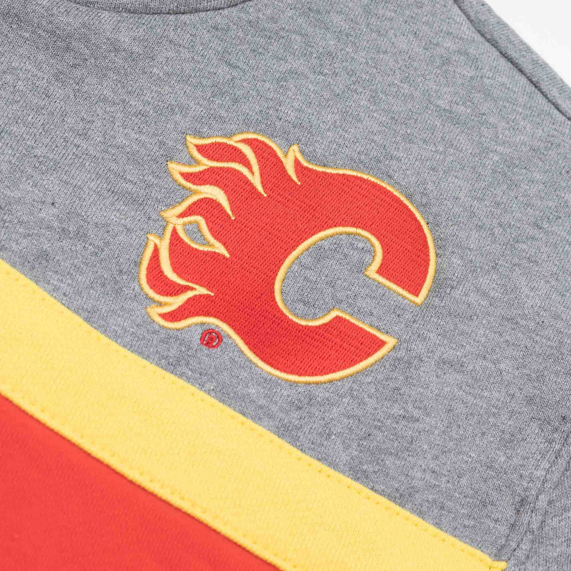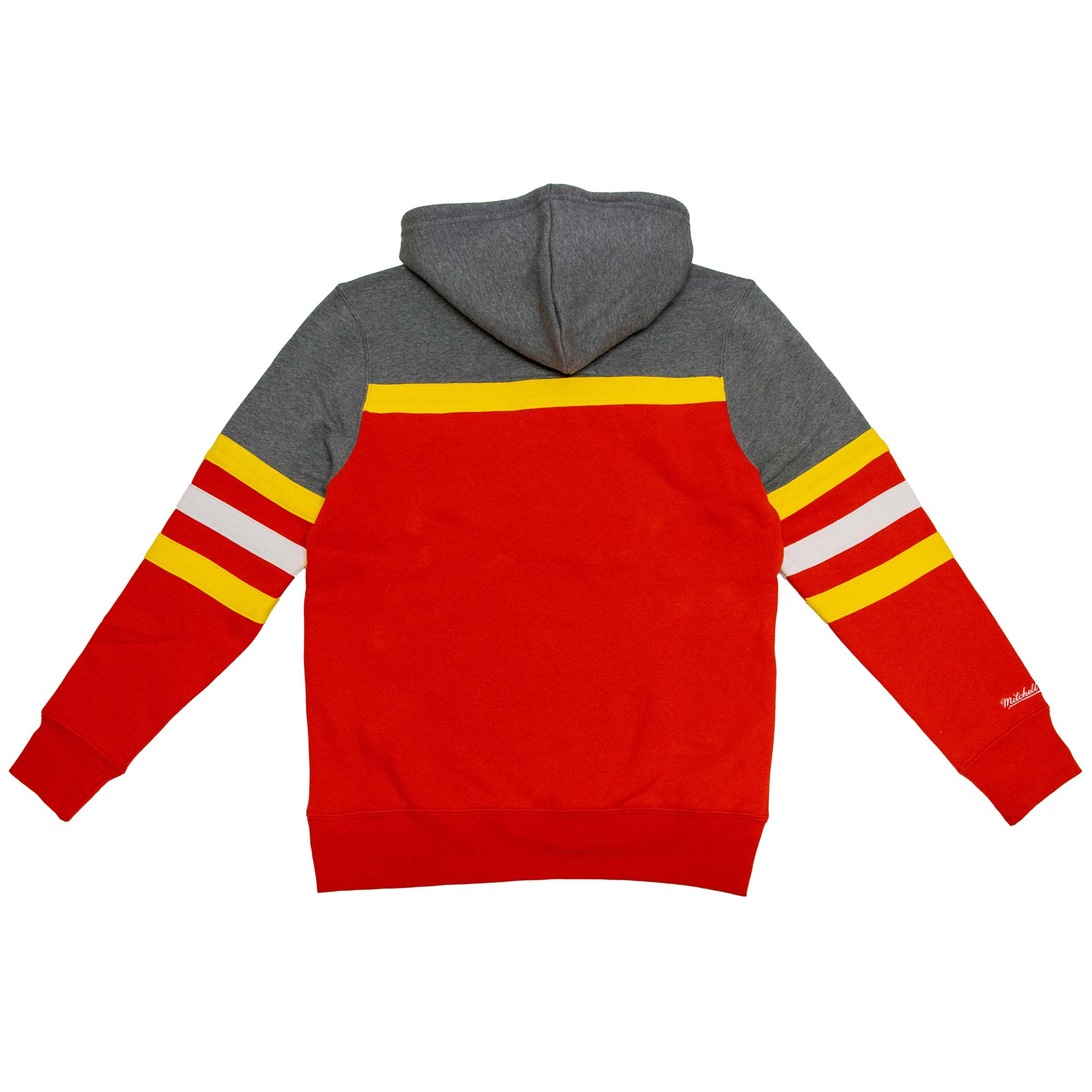 Mitchell & Ness NHL Herren Premium Fleece Kapuzenpullover von deinen Calgary Flames im Head Coach Design.