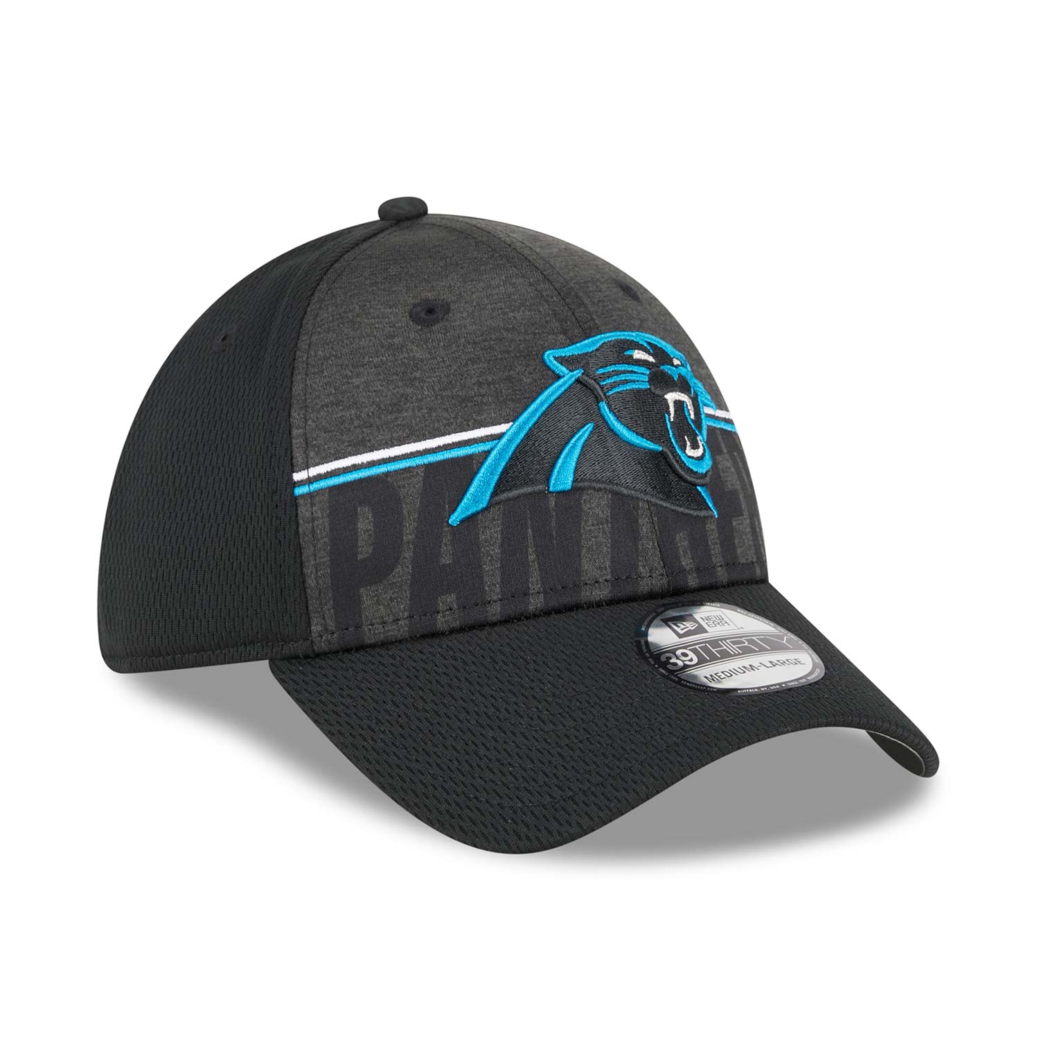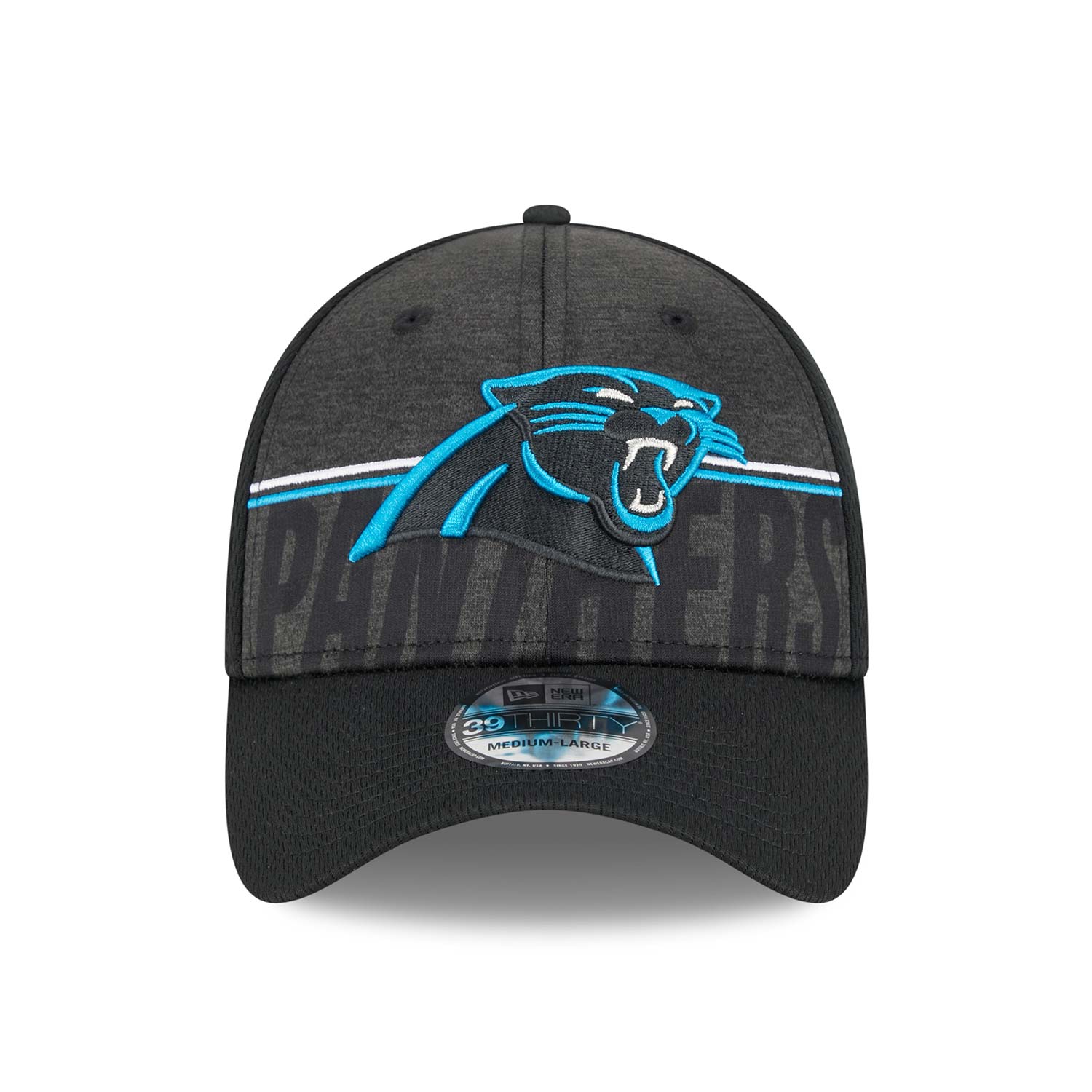 New Era American Football Cap von deinen Carolina Panthers im Stretch-Fit 39THIRTY Style aus der offiziellen 2023 NFL Training Camp Kollektion.