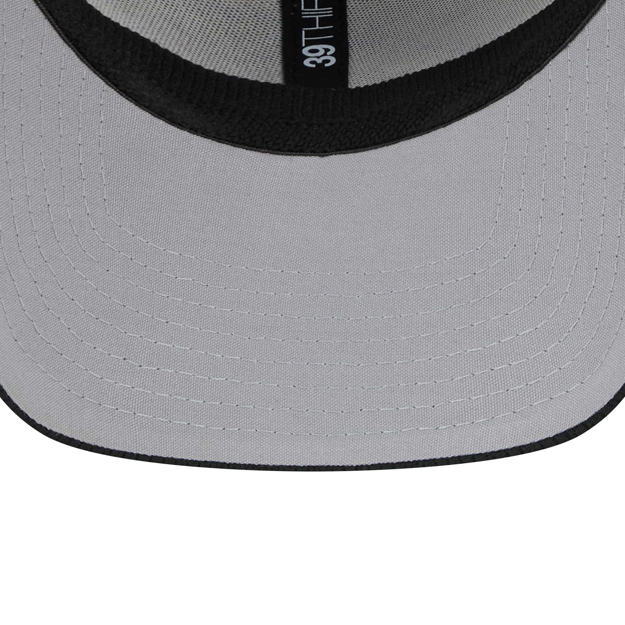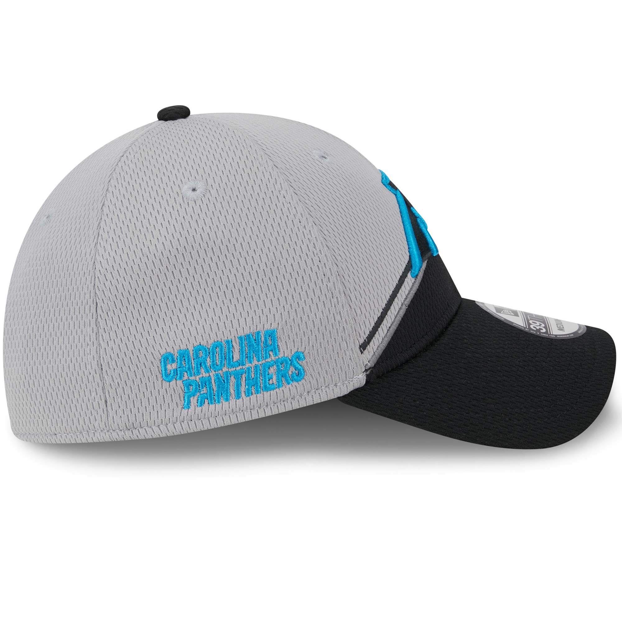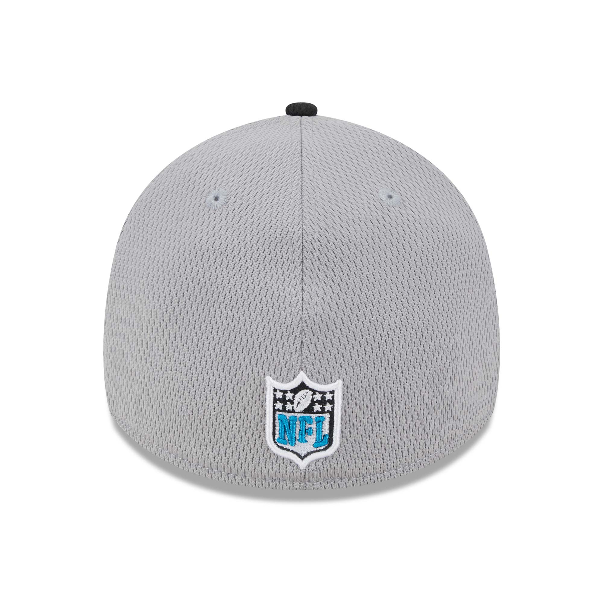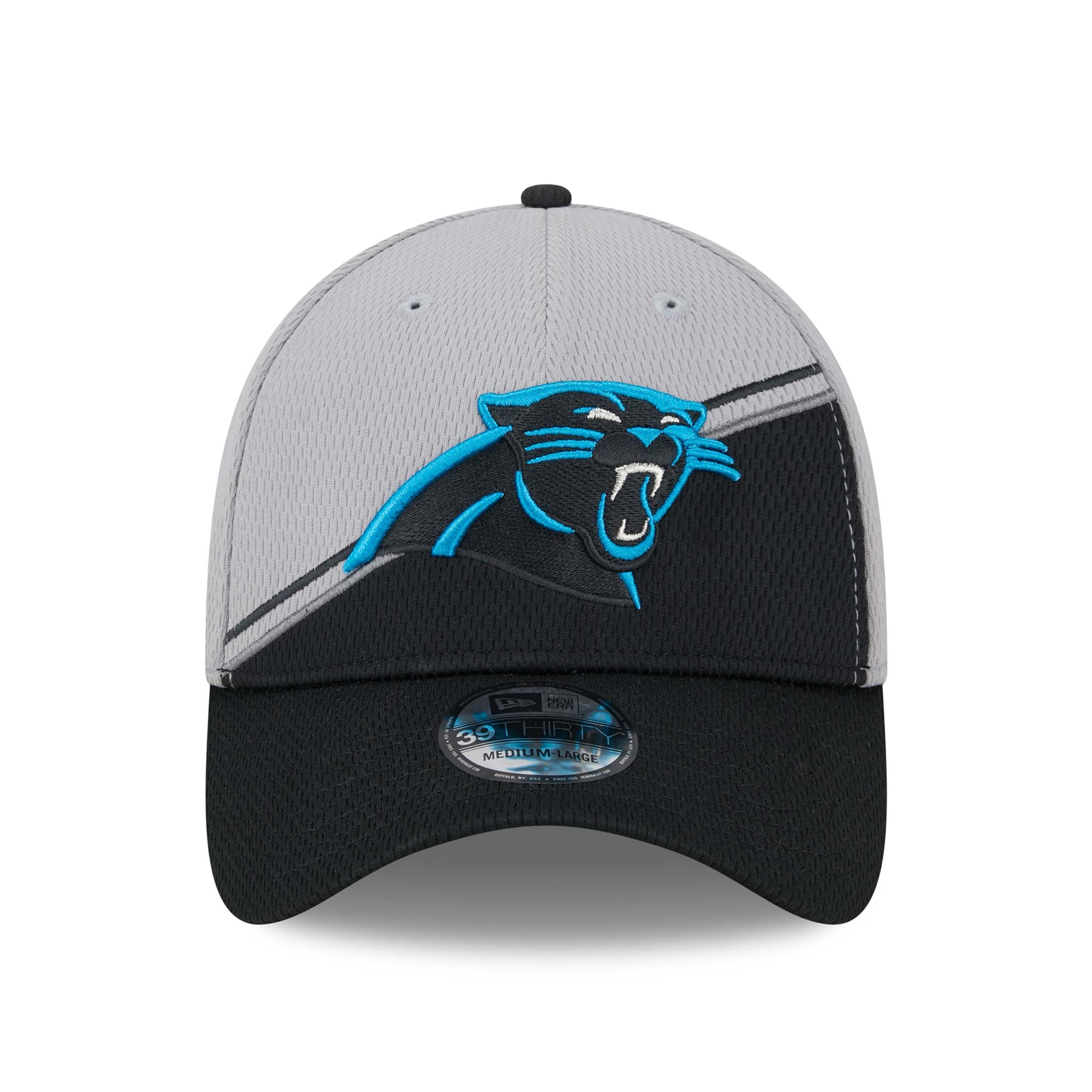New Era American Football Flex Cap von deinen Carolina Panthers im Stretch-Fit 39THIRTY Style aus der schwarz-grauen Colorway 2023 NFL On Field Sideline Kollektion.