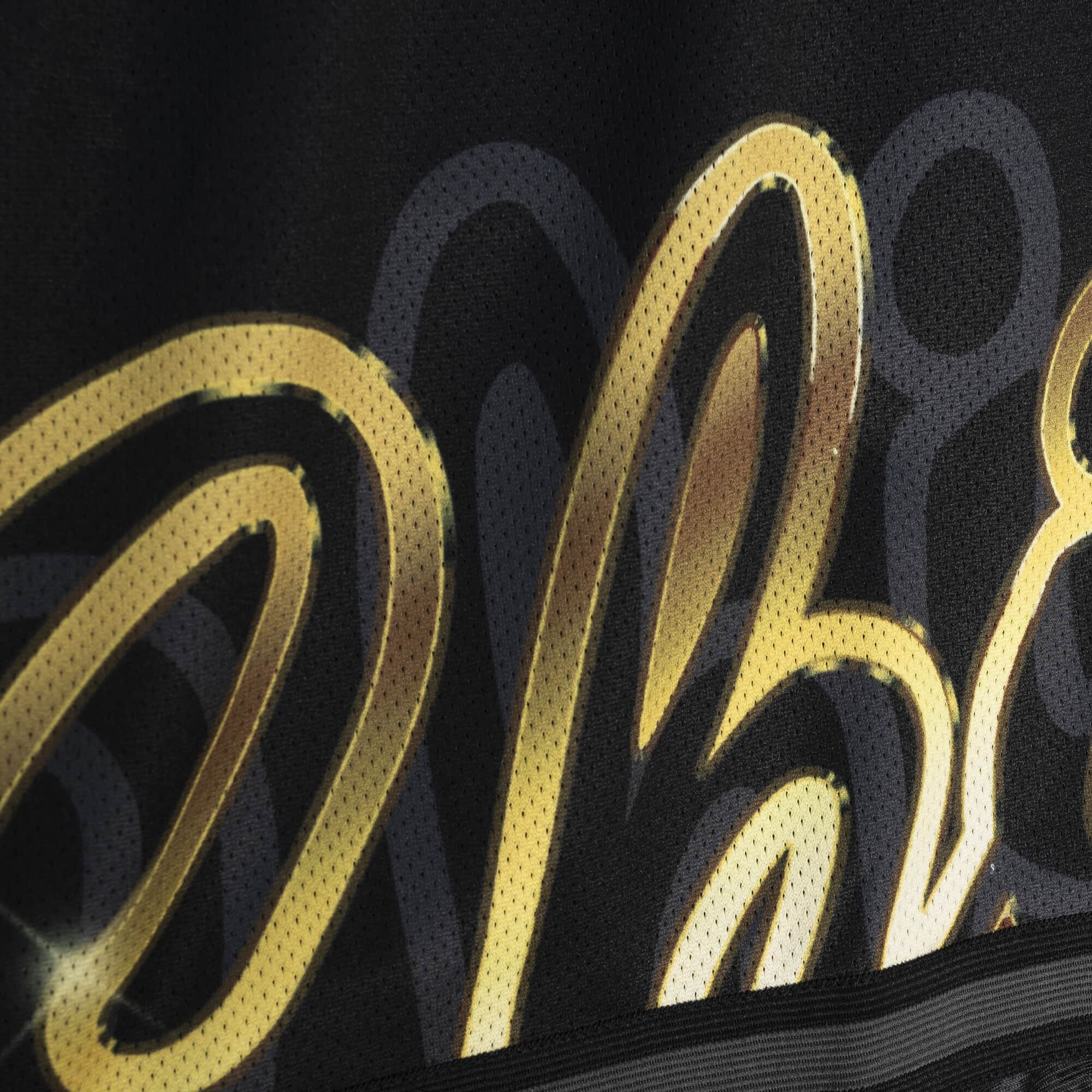 Die vierte Auflage der beliebten Big Face Kollektion von Mitchell and Ness kommt mit dem Gold-Status. Die schwarzen Shorts sind auf der Vorderseite mit den übergroßen Chicago Bulls Wordmark in Gold dekoriert, dunkelgraue Schatten der Schriftzüge sorgen für den besonderen Look. Die klassischen NBA Shorts bestehen aus doppeltseitigen Polyester-Mesh und stehen den bekannten Mitchell & Ness Swingman Shorts in Verarbeitung und Style in nichts nach. Die seitlichen Taschen und der elastische Hosenbund mit innerem Kordelzug sorgen für einen angenehmen Tragekomfort. Der extra große Chicago Bulls Schriftzug ist als Sublimationsdruck direkt in den Stoff eingebracht, zusätzlich ist ein kleines Team-Label am inneren Saum angebracht.