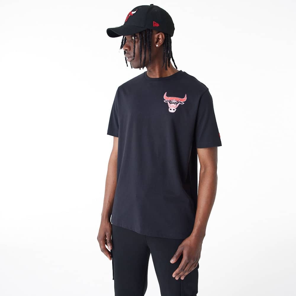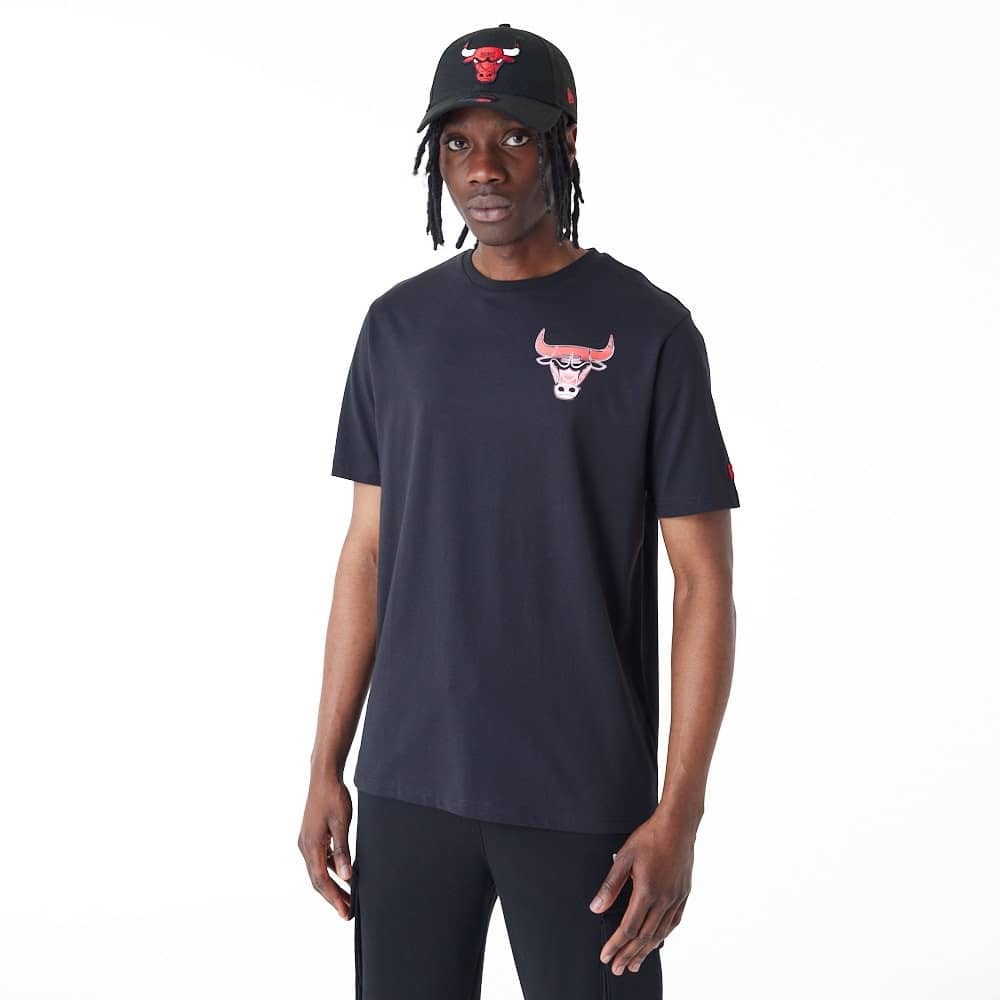 New Era NBA Unisex Basketball T-Shirt von deinen Chicago Bulls im schwarzen Holographic Logo Design.