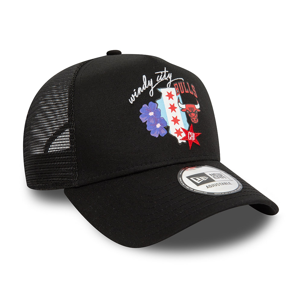 Chicago Bulls State New Era A-Frame Trucker NBA Cap Schwarz