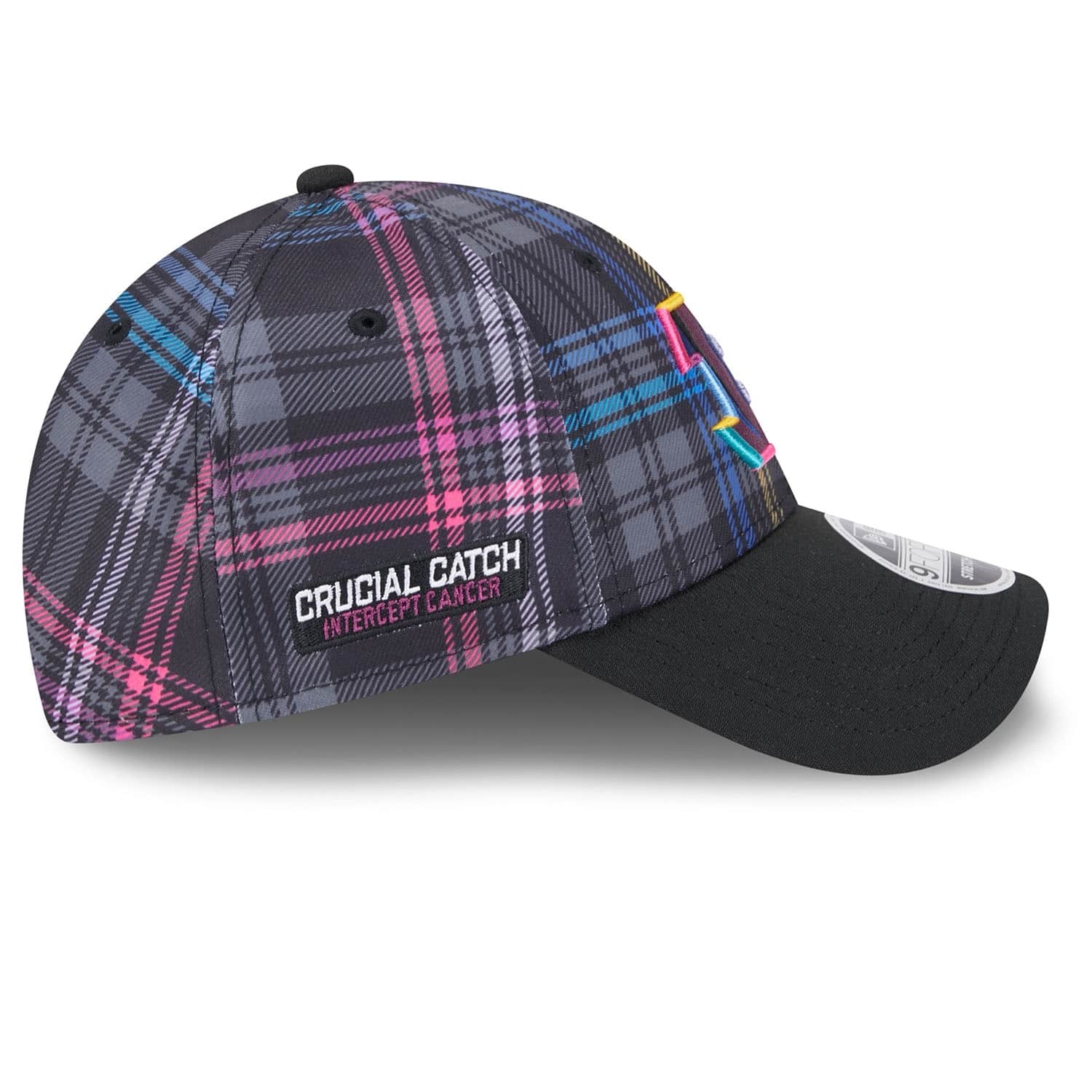 Unterstütze den weltweiten Kampf gegen Krebs mit der offiziellen New Era 2024 NFL Crucial Catch On-Field Kappe. Diese NFL Cap mit verstellbarem Verschluss wird während der 2024-25 Crucial Catch Kampagne im Oktober an den NFL-Seitenlinien getragen. Die Cap ist auf der Vorderseite hochwertig mit dem bunt abgesetzten Cincinnati Bengals Teamlogo bestickt. Die rechte Capseite ist mit dem CRUCIAL CATCH - INTERCEPT CANCER Patch bestickt. Die Rückseite ziert das aufgestickte NFL Logo. Das Sublimierte Karo-Design auf allen sechs Panels in den typischen Crucial Catch Farben sorgt für einen einzigartigen Look.