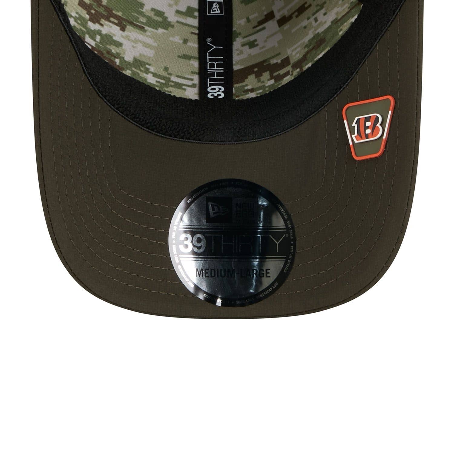 New Era American Football Cap von deinen Cincinnati Bengals im Stretch-Fit 39THIRTY Style aus der offiziellen On-Field 2025 NFL Salute to Service Kollektion.
