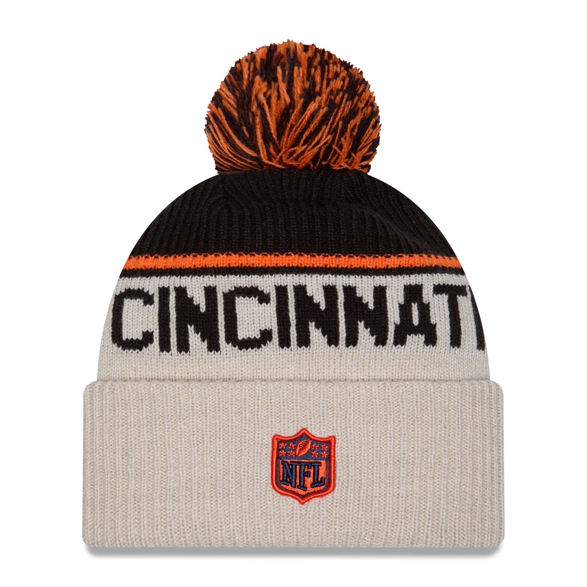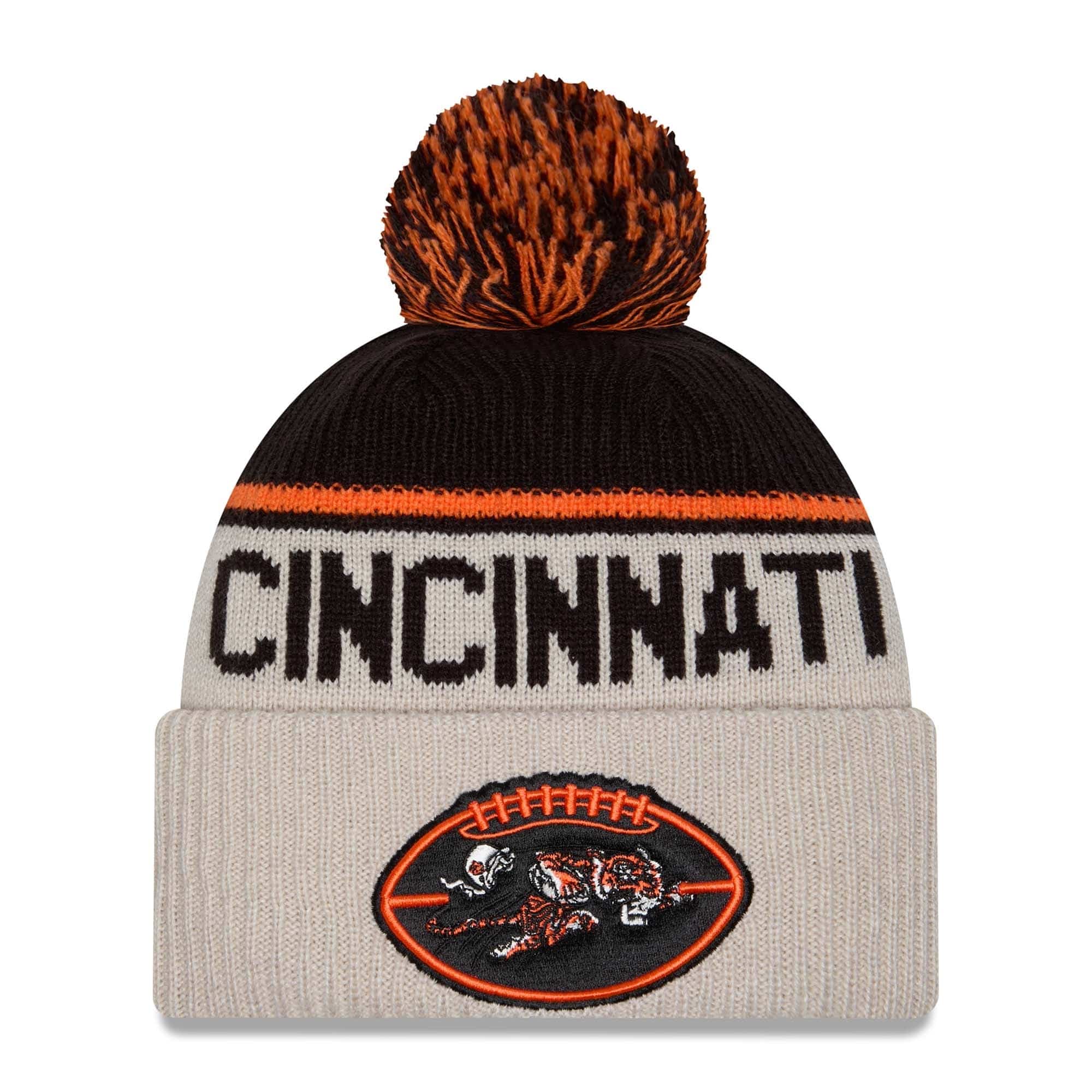 New Era American Football Pudelmütze von deinen Cincinnati Bengals im Historic Throwback Style aus der offiziellen 2024 NFL Sideline Kollektion.