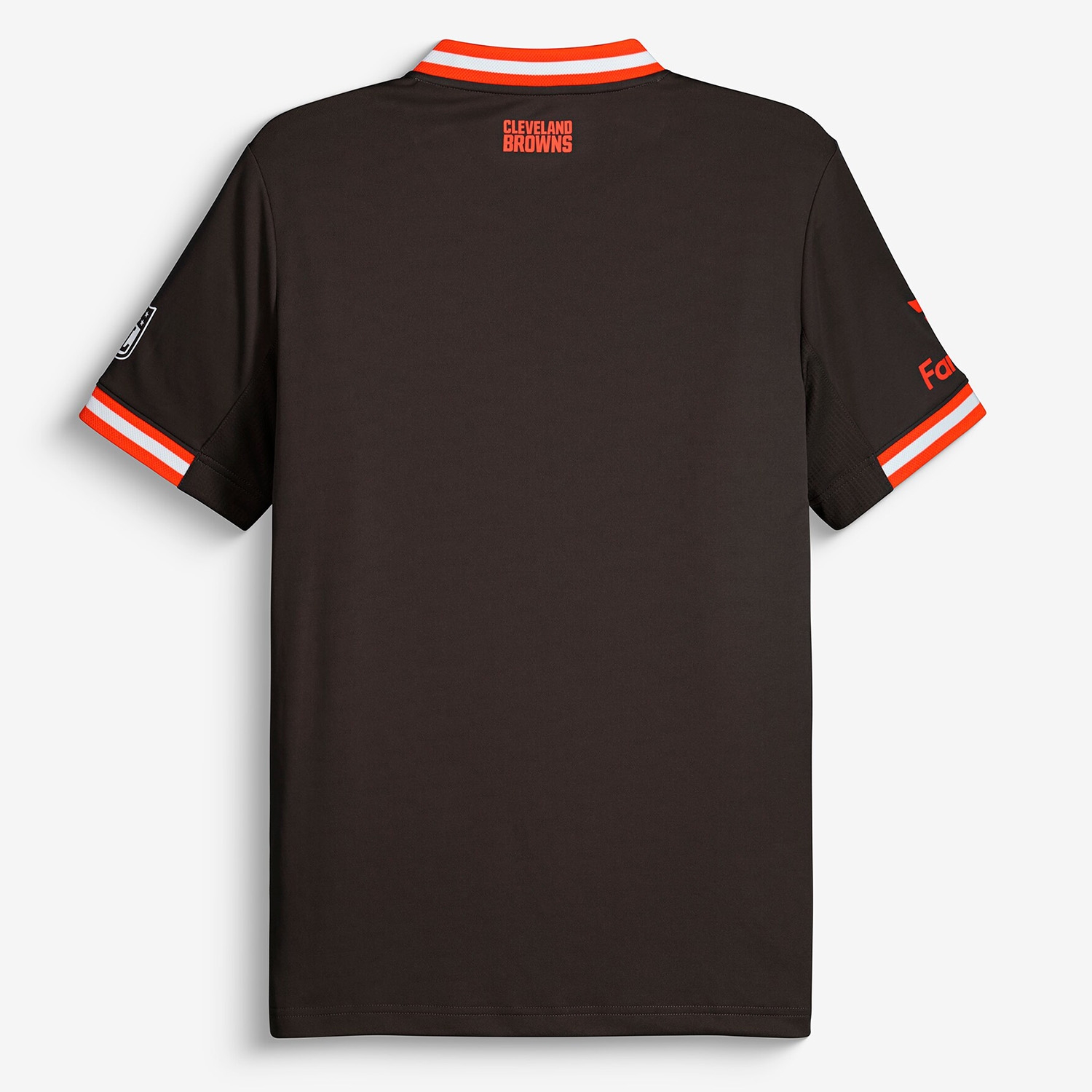 Dieses limitierte Oberteil verbindet die Ästhetik eines klassischen Fußballtrikots mit den ikonischen Elementen deiner Cleveland Browns und vereint damit zwei Sportwelten, die Fans weltweit begeistern. Egal ob im Stadion, zuhause oder unterwegs - dieses Shirt macht deinen Browns-Support sofort sichtbar.